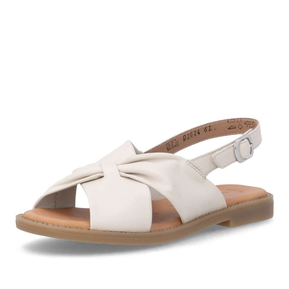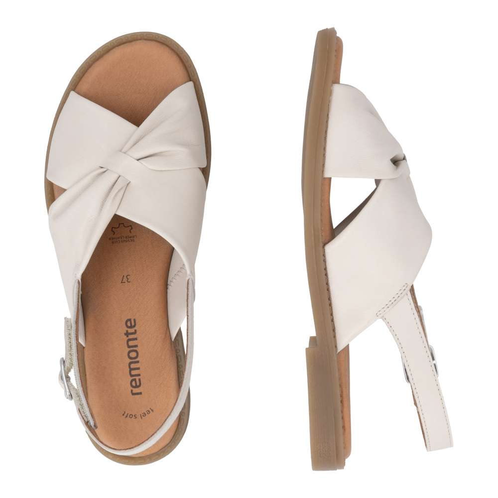 Obuv REMONTE představuje prémiovou řadu značky RIEKER, která se vyznačuje vysokou kvalitou použitých materiálů a precizním zpracováním. Tyto sandály s béžovým koženým svrškem působí velmi půvabně díky zajímavé skladbě pásků, která jim dodává elegantní a moderní vzhled. Zadní pásek je opatřen suchým zipem, což umožňuje snadné obouvání a přizpůsobení dle potřeby pro maximální pohodlí. Celodenní komfort si budete užívat díky příjemně měkké stélce, ať už je obujete do práce, na procházky nebo na různé příležitosti budete doprovázena dokonalým pohodlím v esteticky zajímavém provedení.