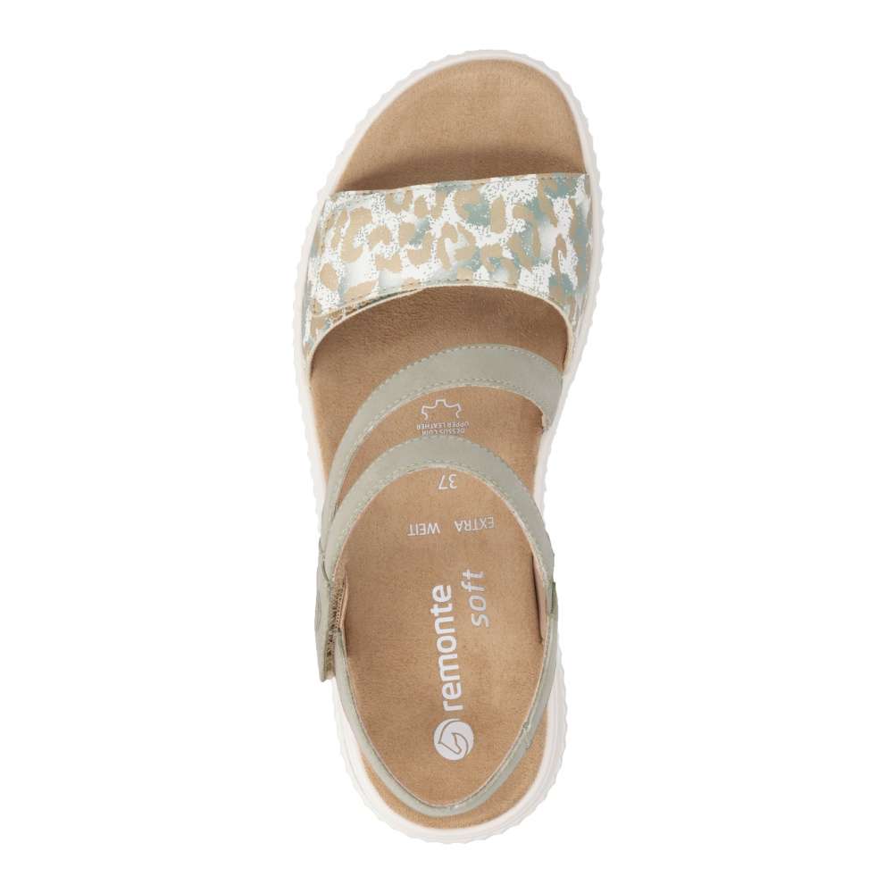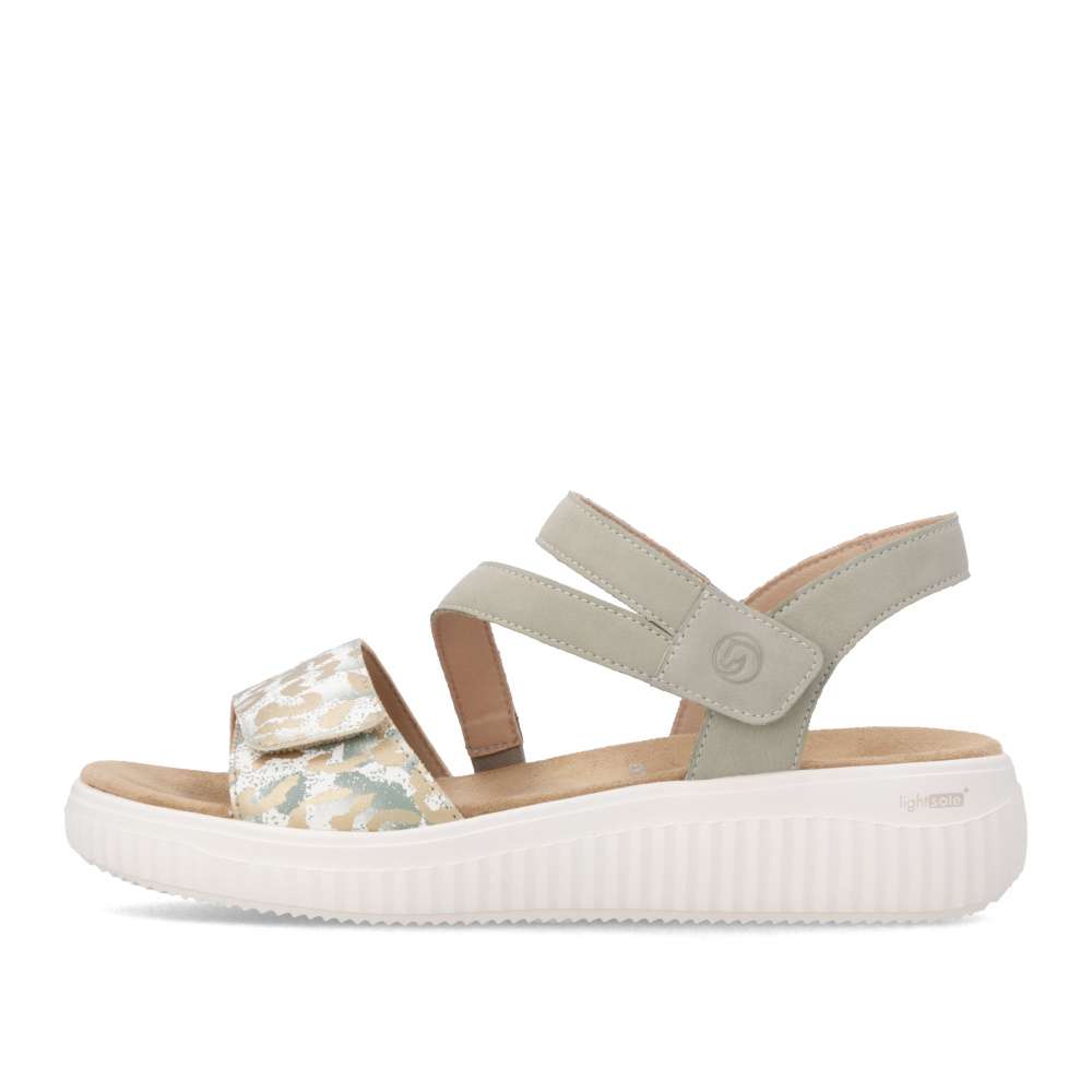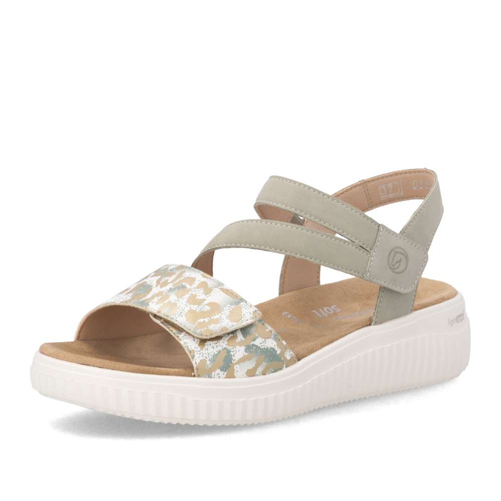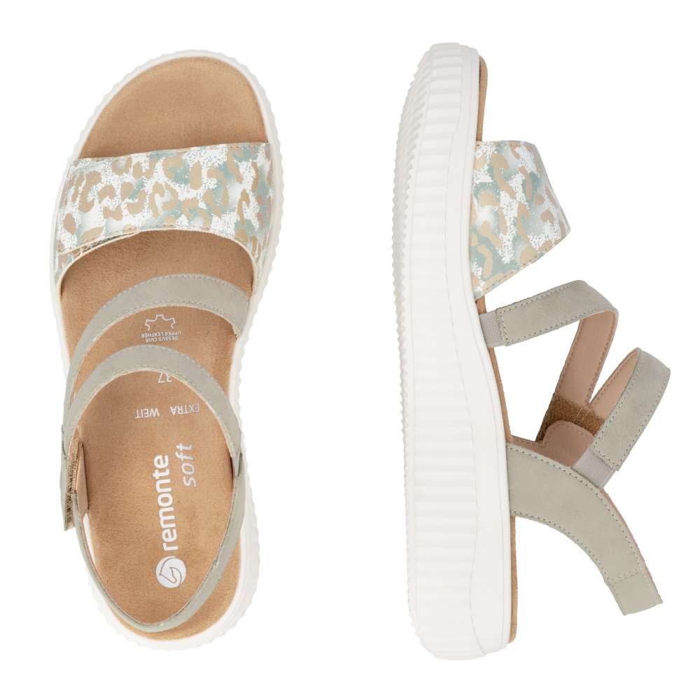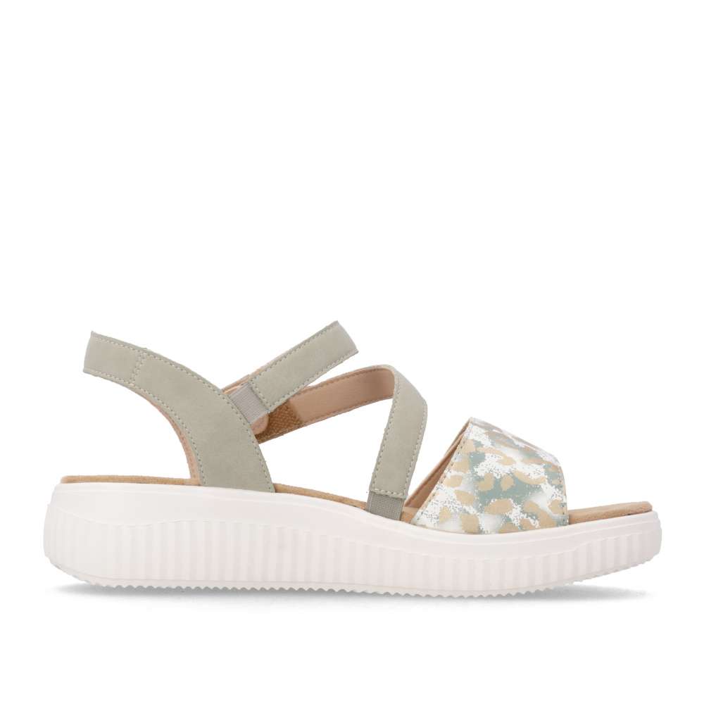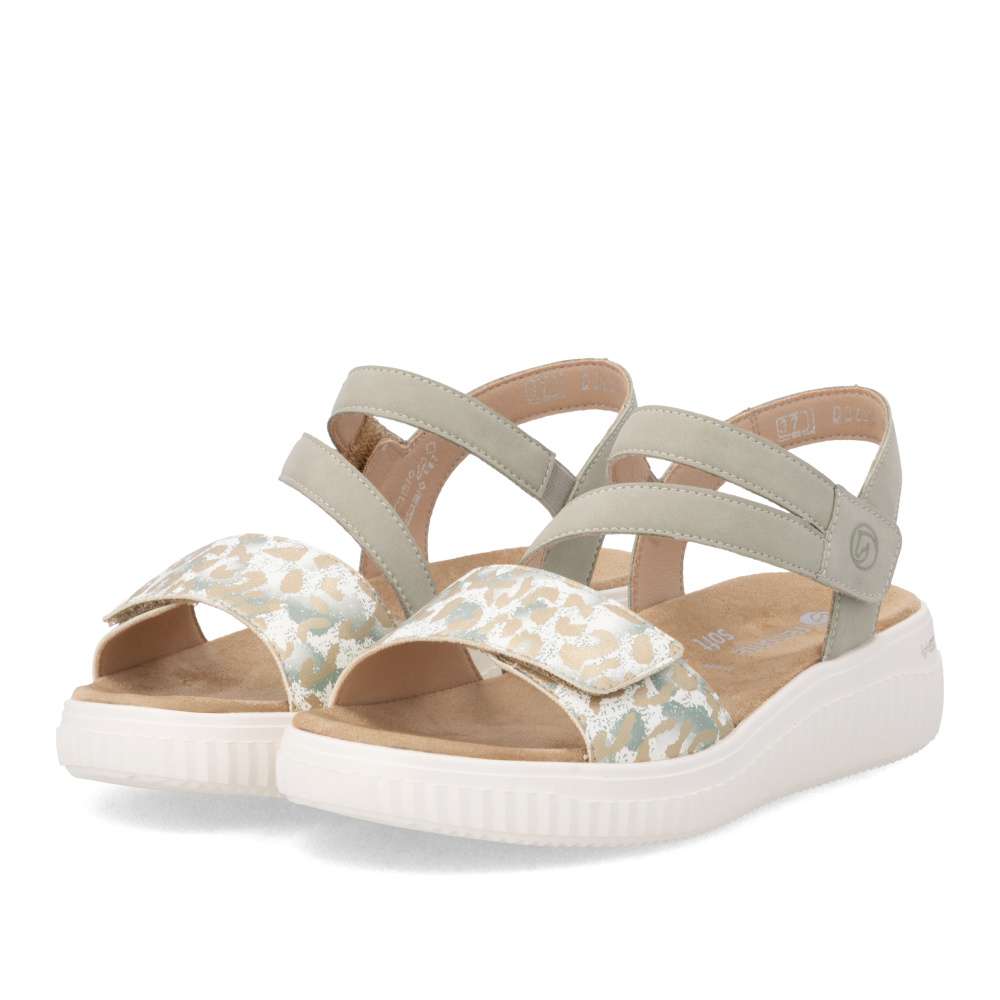 Obuv REMONTE představuje prémiovou řadu značky RIEKER, která se vyznačuje vysokou kvalitou použitých materiálů a precizním zpracováním. Vizuální atraktivita těchto sandálů spočívá v harmonické kombinaci pásků, které jsou doplněny jemnými odlesky a vzorem, což dodává obuvi jedinečný vzhled. Precizně poskládané pásky jsou opatřeny suchými zipy, které umožňují snadné nastavení obuvi podle tvaru nohy a pásek přes nárt je navíc vybaven gumičkou, která zvyšuje přizpůsobivost. Textilní stélka je příjemná na dotek a podešev poskytne dokonalou oporu při chůzi.Tyto sandály perfektně zapadnou do vašeho každodenního městského outfitu, ale stejně dobře vyniknou i v pracovním prostředí, kde oceníte jejich pohodlí a upravený vzhled.