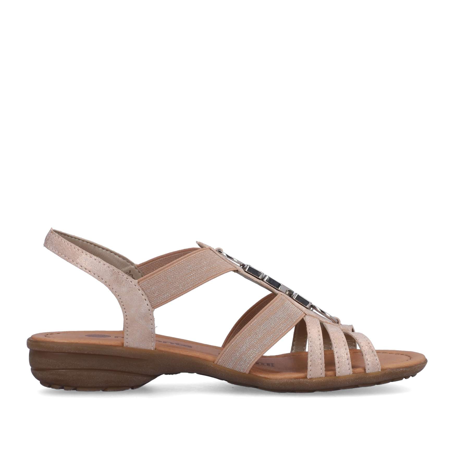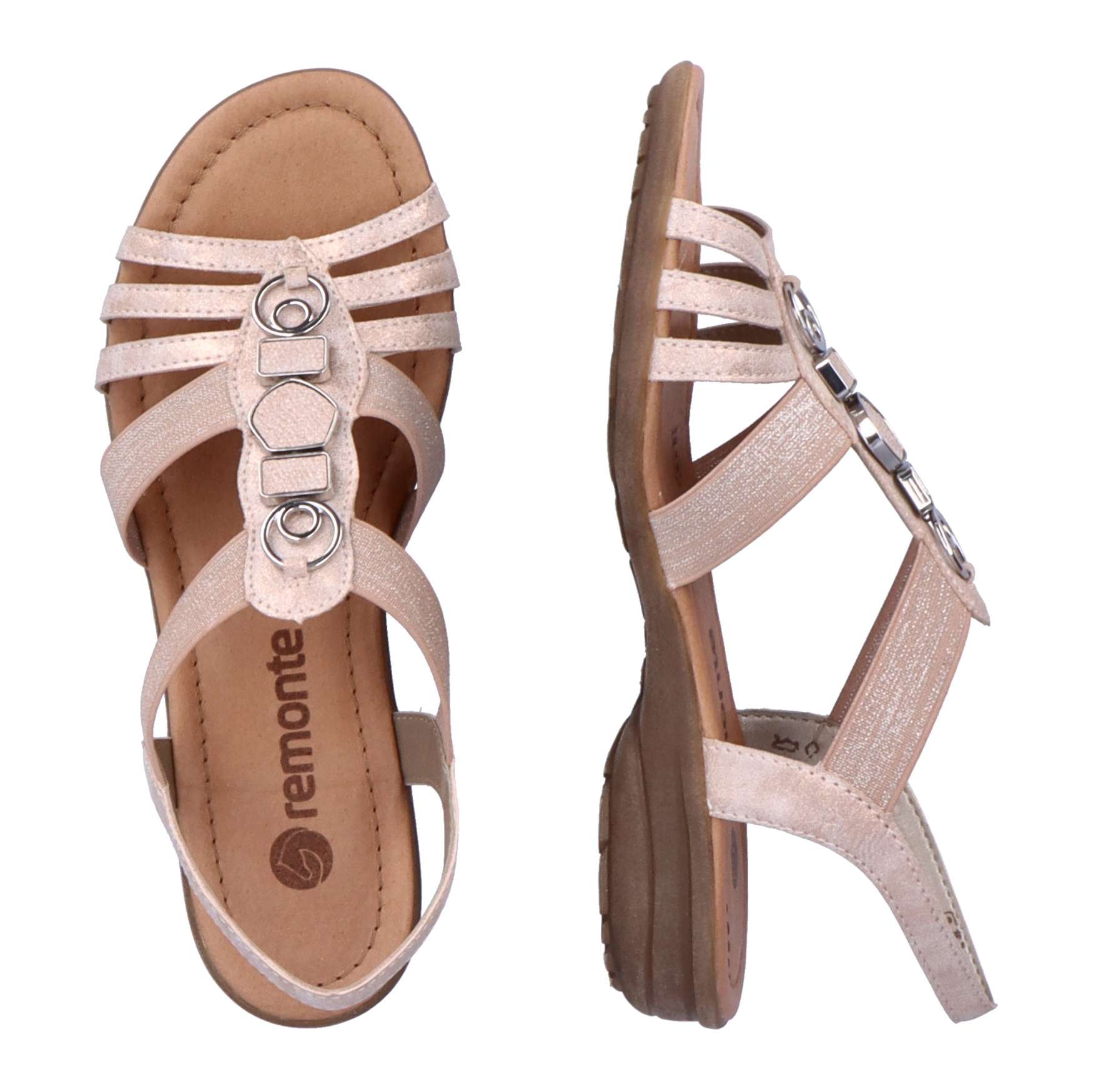 Obuv REMONTE je vyšší řadou značky RIEKER, obuv se vyznačuje kvalitou použitých materiálů. Tyto velmi elegantní sandály značky RIEKER skvěle doplní Vaše letní oblečení. Unikátní vzhled dodávají obuvi ozdoby na nártu. Pružné nártové řemínky zajistí snadné obouvání a dokonale se přizpůsobí Vaší noze. Kožená stélka je příjemná a každým nášlapem na ni ucítíte její měkkost. Tento zajímavý model vynosíte na procházku městem, do práce a bude ideální volbou ke kalhotám i sukni.
