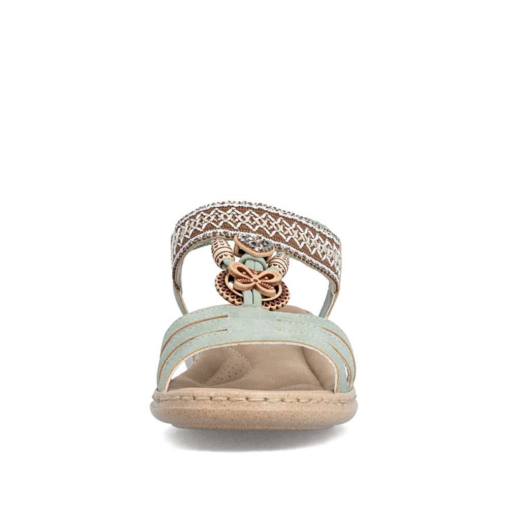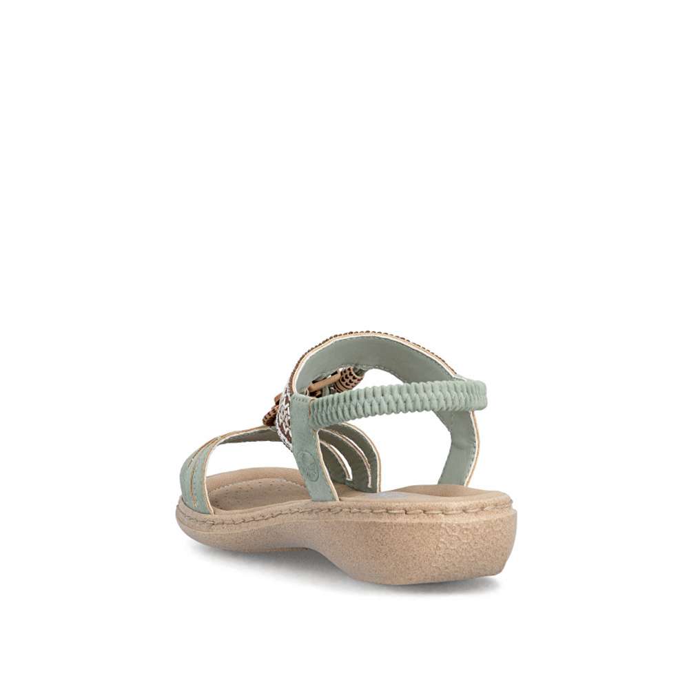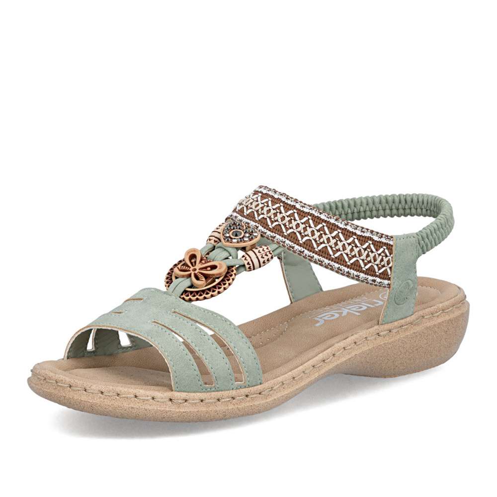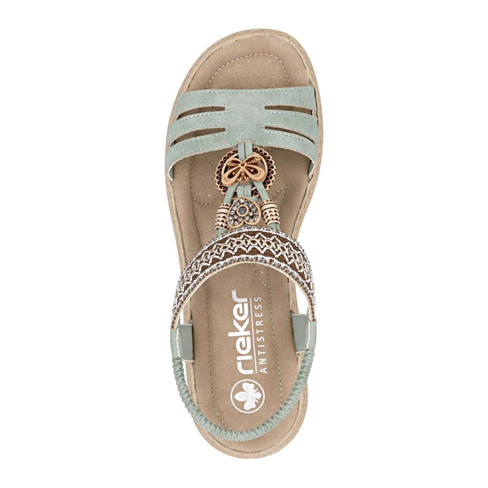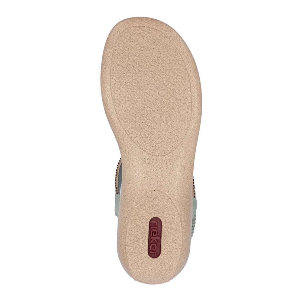Sandály RIEKER se vyznačují jedinečným stylem, který vzniká kombinací materiálů a půvabných ozdobných aplikací. Nártový pásek je unikátní svým detailním zdobením, které okamžitě upoutá pozornost a dodává sandálům jedinečný charakter. Pružný zadní pásek umožňuje snadné nazutí a dokonalé přizpůsobení noze, zatímco příjemná stélka zajišťuje komfort při každém kroku. Flexibilní podrážka s tlumením nárazů zajišťuje přirozený pohyb a stabilitu, takže se budete cítit pohodlně a lehce při každém kroku. Tyto sandály RIEKER spojují styl, komfort a praktičnost, čímž se stávají ideální volbou pro ženy, které chtějí vyniknout a zároveň si užívat pohodlí při každodenním nošení.