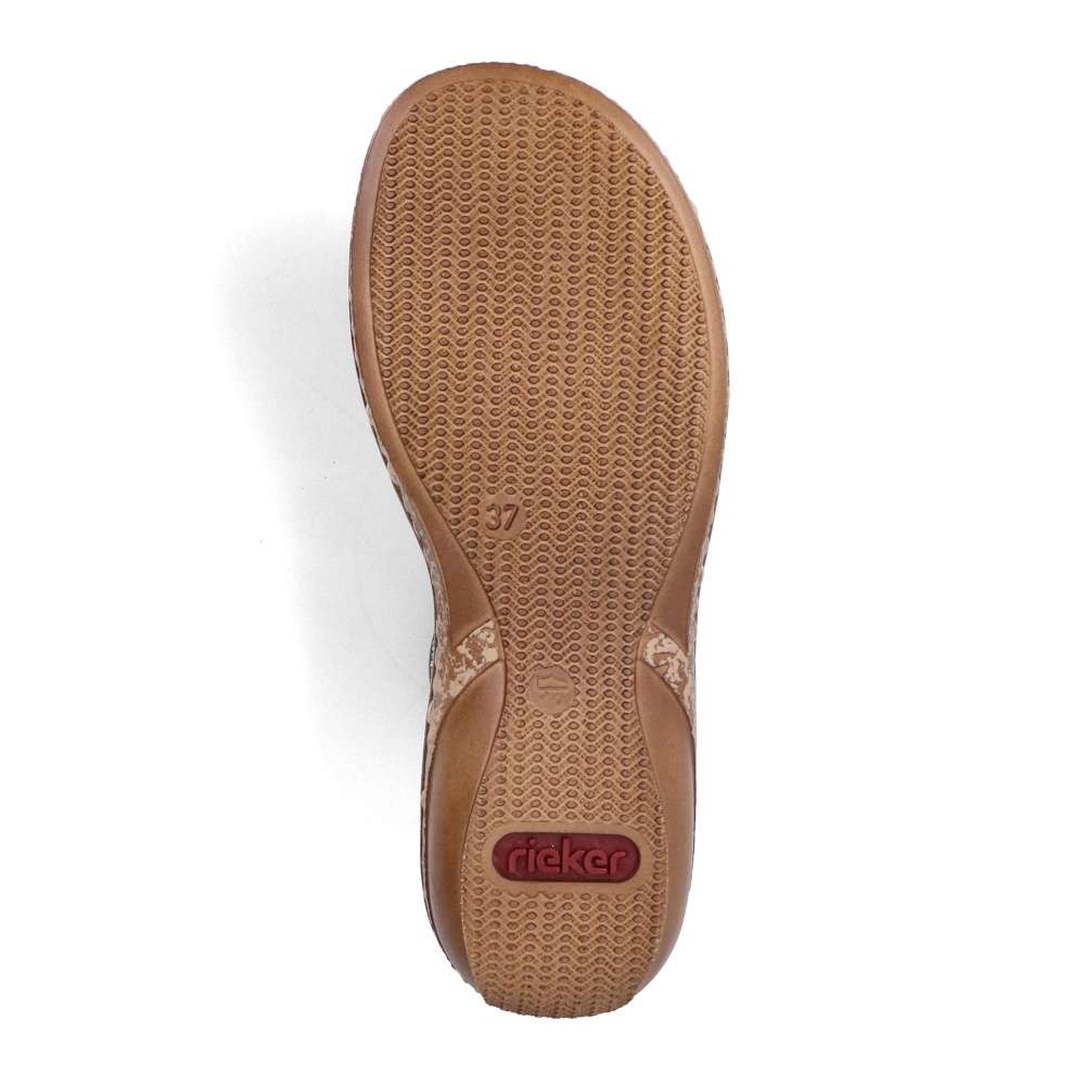 Dámské sandálky značky Rieker si oblíbíte i Vy. Svršek boty je vyrobený z pevných pásků na špičce pro upevnění nohy, a elastických pro snadné obutí. Botička je zdobená kamínky různých tvarů, oranžové a modré barvy na nártu, a vytlačeným logem značky na straně boty. Podešev vysoká cca 35 mm dodá botičce na elegantnosti. Tyto krásky jsou ideální na každodenní nošení v horkých letních dnech, ale i na pláž u moře. Technologie: Antistress – podešev je díky této technologii lehká, flexibilní, absorbuje nárazy při došlapu a snadno se přizpůsobí každé noze.