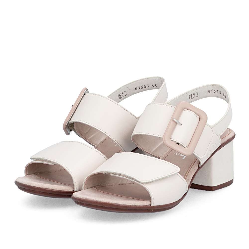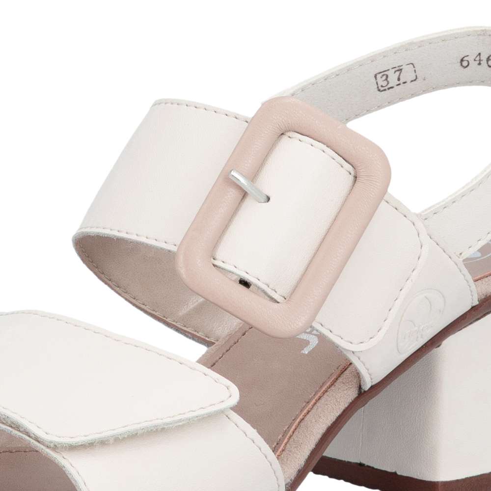 Dokonalou dámu z Vás udělají tyto sandály RIEKER, půvabná kombinace světlé barvy koženého svršku a výrazné spony u kotníku dodávají těmto sandálům elegantní vzhled. Oba pásky jsou nastavitelné díky suchým zipům, což zajišťuje pohodlné přizpůsobení dle potřeby a snadné nazutí, kdy vkročíte na příjemně měkkou stélku. Půvab každé z vás pozvedne podpatek, ale díky stabilitě širokého zpracování nebude omezovat při chůzi. Podešev účinně tlumí nárazy při každém kroku, což zaručuje maximální komfort. Tyto sandály jsou ideální volbou pro každou příležitost, do práce, procházku městem či večerní posezení s přáteli.