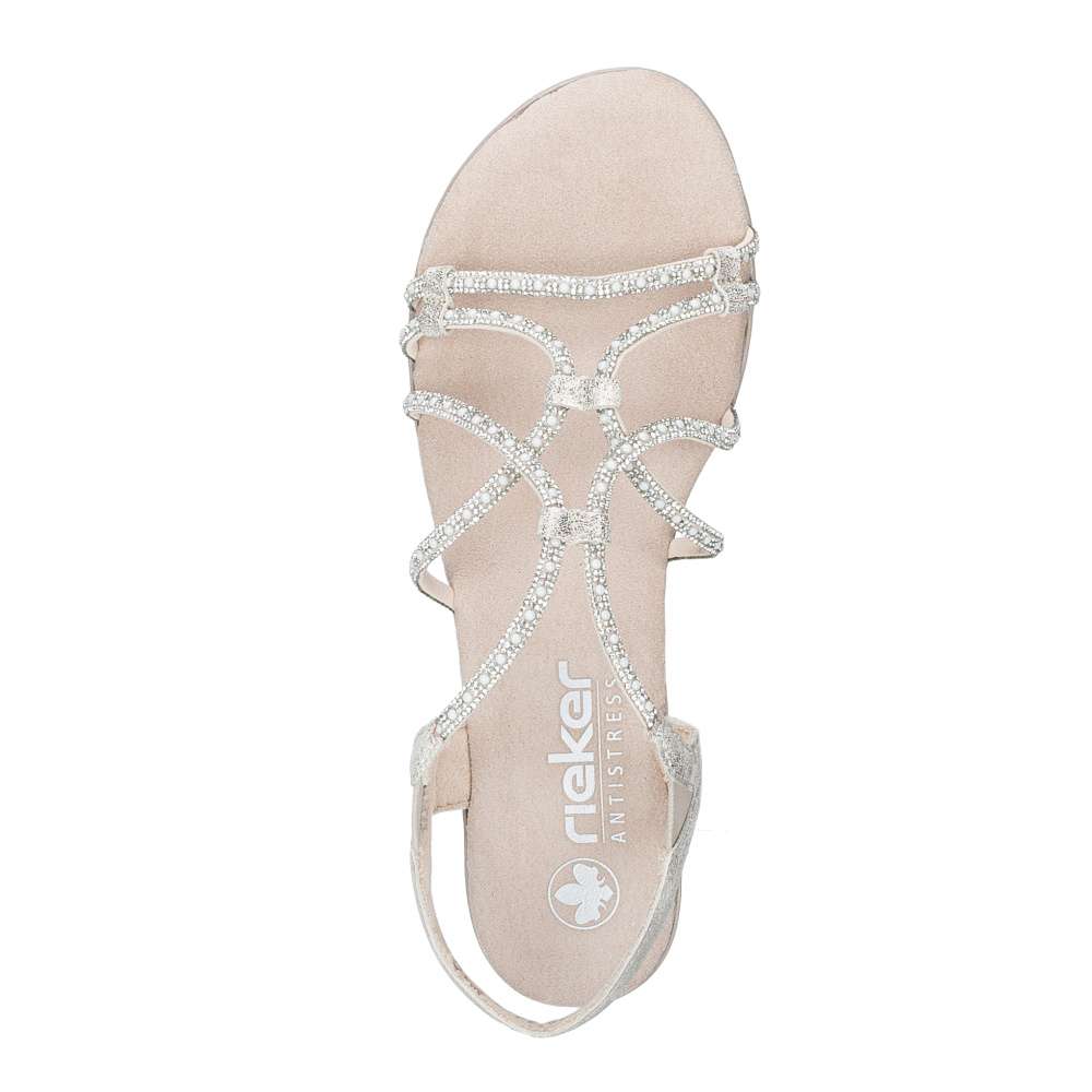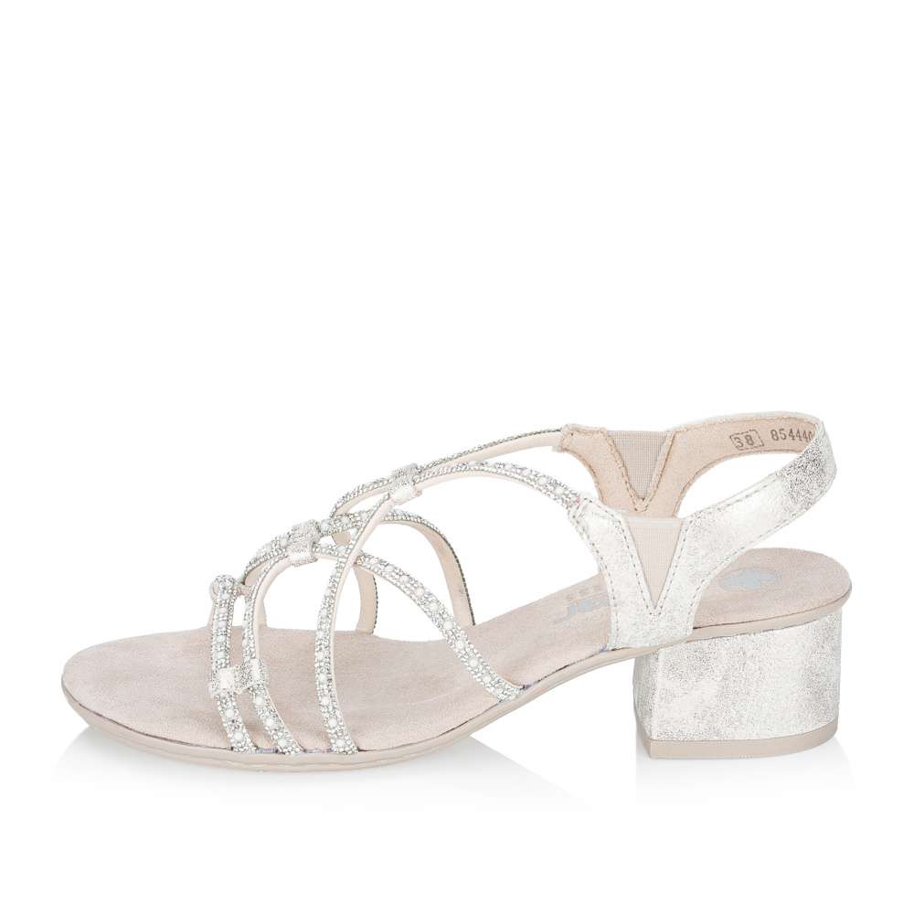 Tento model sandálů RIEKER spojuje výjimečný vizuální efekt s pečlivě promyšlenou funkčností, takže si jej oblíbí ženy, které nechtějí dělat kompromisy mezi stylem a pohodlím. Jejich třpytivé pásky se elegantně skládají do jedinečného vizuálního celku, který okamžitě upoutá pozornost a dodá vašemu letnímu outfitu jiskru a styl. Praktické boční gumičky zajišťují snadné obouvání a zároveň optimální přizpůsobení boty ve tvaru chodidla, takže se můžete cítit pohodlně během celého dne. Měkká stélka se stará o pocit komfortu při každém kroku, zatímco nízký a široký podpatek zvýrazní Váš ženský půvab bez kompromisů v pohodlí. Oživte svůj letní šatník těmito sandálky a buďte připravená zářit při každém kroku – ať už jedete do města, na procházku nebo na letní setkání s přáteli.