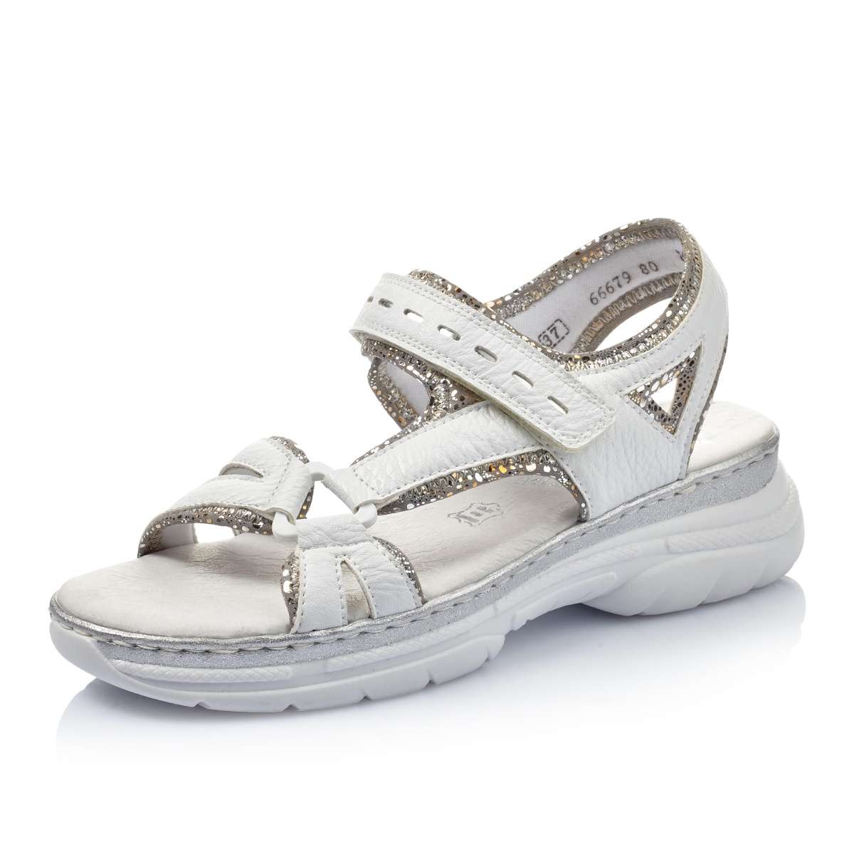 Dámské sandály bílo barvy budou skvostem ve Vašem botníku. Speciální design okrajů svrškových dílů s metalickými odlesky dodává tomuto modelu šmrnc. Pásek kolem kotníku má zapínání na suchý zip pro dokonalé přizpůsobení boty přímo k Vaší noze. Užijete je jak na procházky, tak na běžné pochůzky, ale i na cestu do práce.