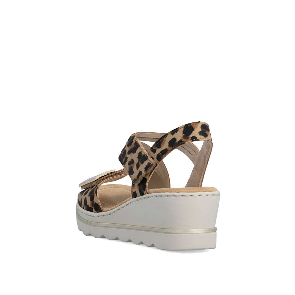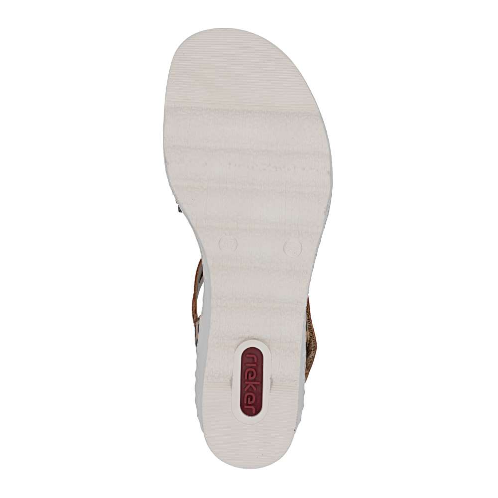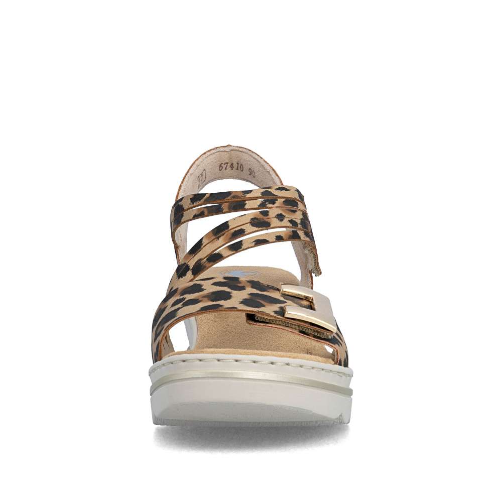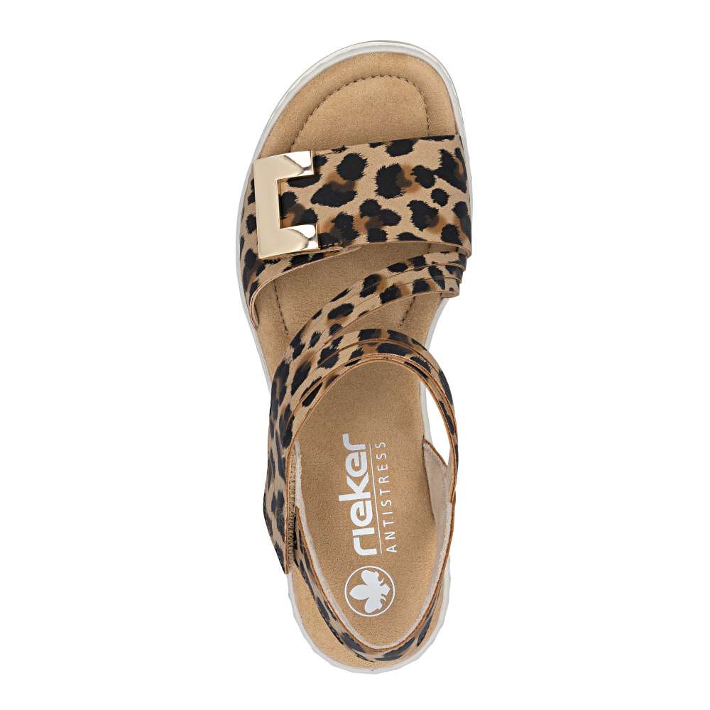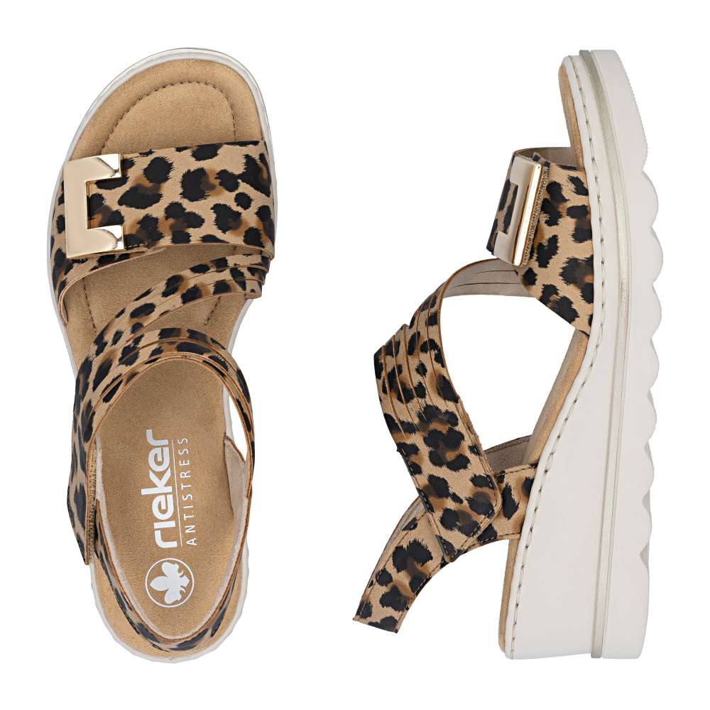 Módní výraz těchto sandálů RIEKER je jasně dána zvířecím motivem pásků svršku, jehož atraktivní skladba působí vizuálně atraktivně. Jejich vzhled krásně doplňuje výrazná dekorativní aplikace na předním pásku, která dodává modelu jemný módní akcent. Díky suchým zipům se sandály snadno obouvají a dokonale se přizpůsobí tvaru nohy, čímž poskytují pocit jistoty a pohodlí během celého dne. Příjemná textilní stélka se postará o měkký došlap, zatímco klínový podpatek jemně zvýrazní ženskou siluetu, dodá eleganci lemováním s odlesky a zároveň zachová komfort a stabilitu při chůzi. Tyto sandály RIEKER jsou ideálním společníkem pro letní dny, kdy toužíte po stylu a pohodlí v dokonalé harmonii.