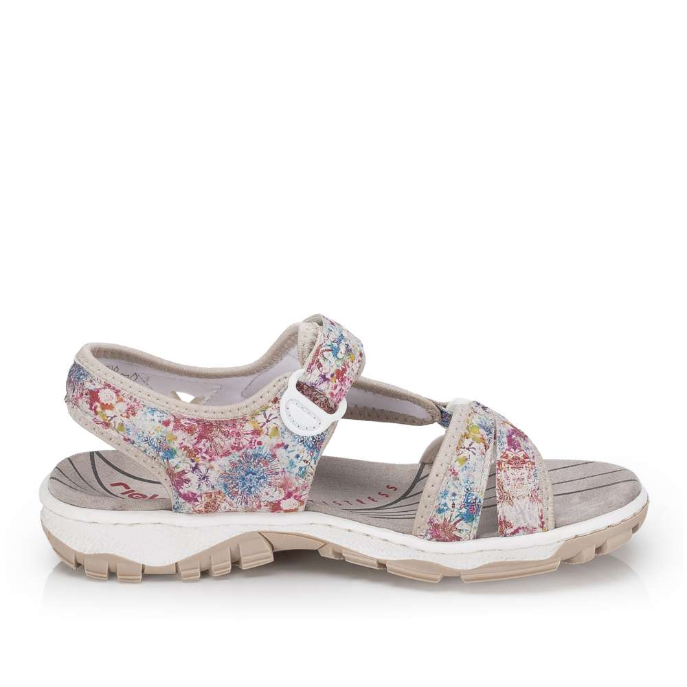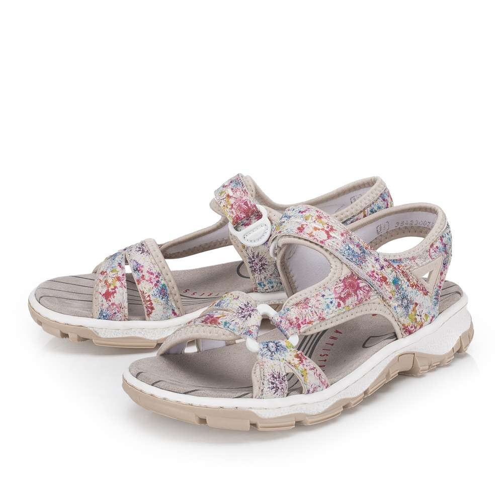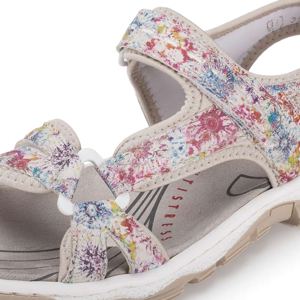 Dámské sportovní sandály RIEKER jsou jako stvořené pro letní dobrodružství, dlouhé procházky i aktivní dny strávené venku. Půvabný potisk na svršku dodává modelu jemnost, díky čemuž se stane krásným doplňkem letních outfitů. Tyto sandály podtrhnou vaši ženskost a zároveň nabídnou pohodlí, na které se můžete spolehnout během celého dne. Praktický pásek se zapínáním na suchý zip umožňují snadné obouvání a individuální nastavení přesně podle tvaru nohy, což zaručuje pohodlí při chůzi. O komfort během celého dne se postará příjemná textilní stélka spolu s flexibilní podešví, která tlumí nárazy a podporuje přirozený pohyb chodidla. Tyto sandály RIEKER jsou ideální volbou pro ženy, které chtějí mít během letních dnů jistotu pohodlí a stylového vzhledu – bez kompromisů, ať už se vyberete kamkoli.