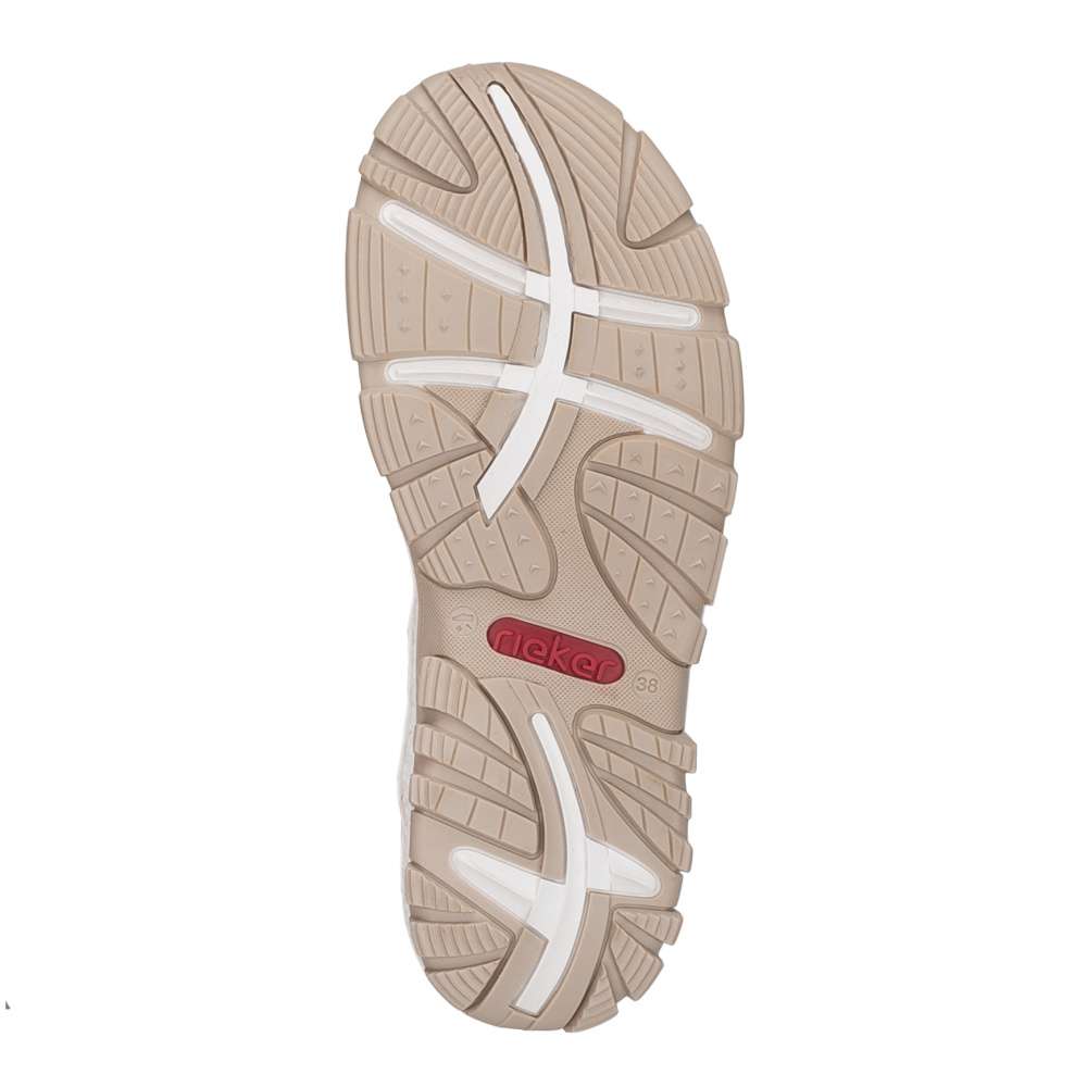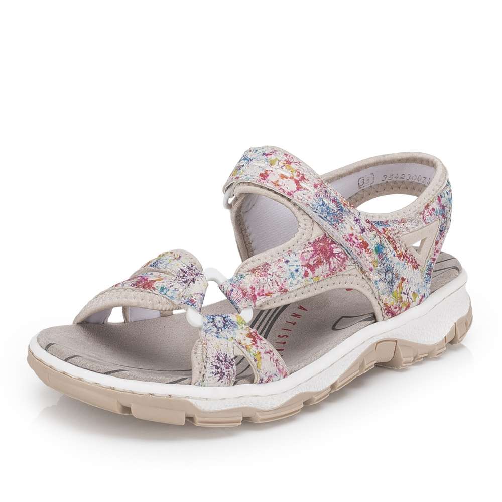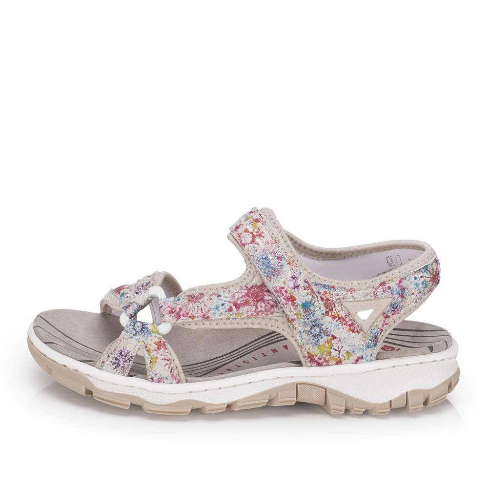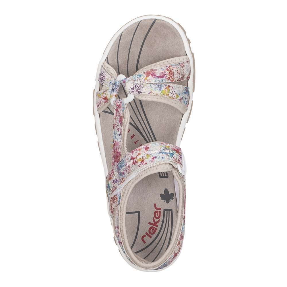 Dámské sportovní sandály RIEKER jsou jako stvořené pro letní dobrodružství, dlouhé procházky i aktivní dny strávené venku. Půvabný potisk na svršku dodává modelu jemnost, díky čemuž se stane krásným doplňkem letních outfitů. Tyto sandály podtrhnou vaši ženskost a zároveň nabídnou pohodlí, na které se můžete spolehnout během celého dne. Praktický pásek se zapínáním na suchý zip umožňují snadné obouvání a individuální nastavení přesně podle tvaru nohy, což zaručuje pohodlí při chůzi. O komfort během celého dne se postará příjemná textilní stélka spolu s flexibilní podešví, která tlumí nárazy a podporuje přirozený pohyb chodidla. Tyto sandály RIEKER jsou ideální volbou pro ženy, které chtějí mít během letních dnů jistotu pohodlí a stylového vzhledu – bez kompromisů, ať už se vyberete kamkoli.