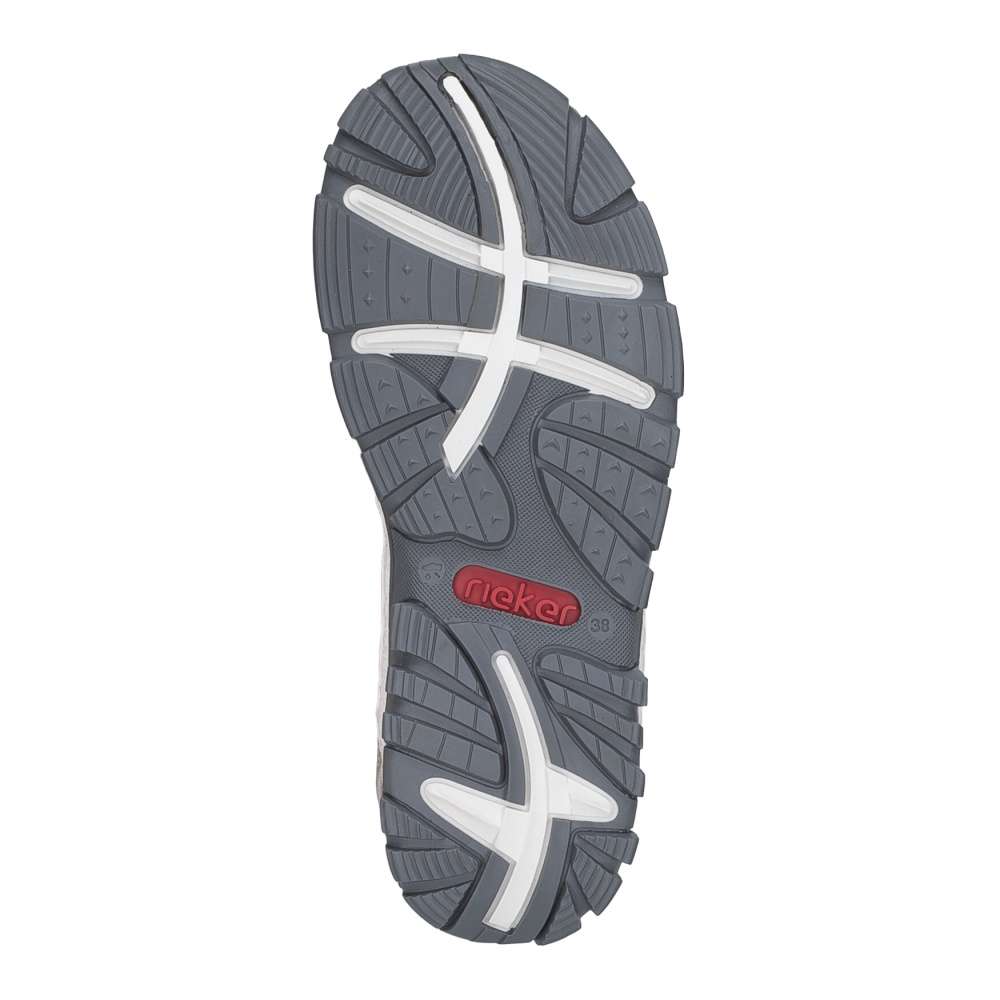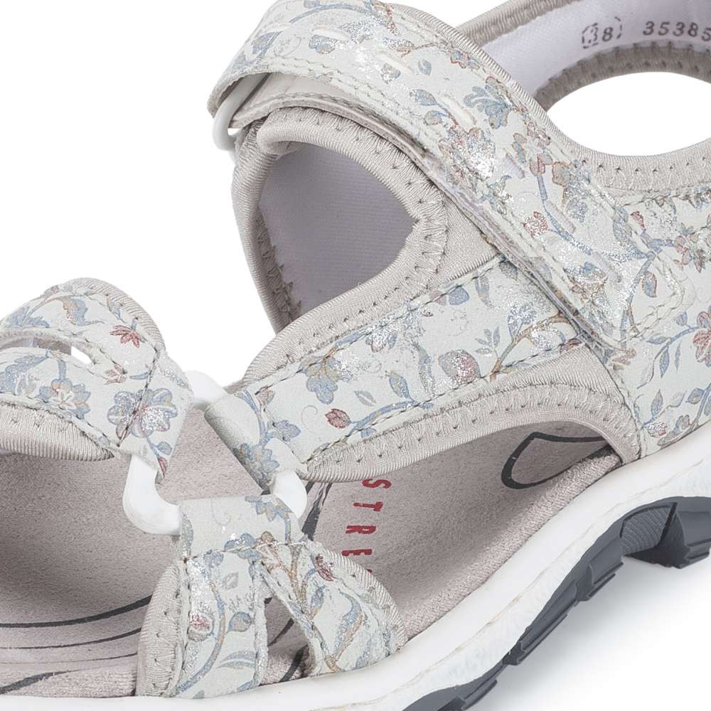 Dámské sportovní sandály RIEKER jsou jako stvořené pro letní dobrodružství, dlouhé procházky i aktivní dny strávené venku. Půvabný potisk na svršku dodává modelu jemnost, díky čemuž se stane krásným doplňkem letních outfitů. Tyto sandály podtrhnou vaši ženskost a zároveň nabídnou pohodlí, na které se můžete spolehnout během celého dne. Praktický pásek se zapínáním na suchý zip umožňují snadné obouvání a individuální nastavení přesně podle tvaru nohy, což zaručuje pohodlí při chůzi. O komfort během celého dne se postará příjemná textilní stélka spolu s flexibilní podešví, která tlumí nárazy a podporuje přirozený pohyb chodidla. Tyto sandály RIEKER jsou ideální volbou pro ženy, které chtějí mít během letních dnů jistotu pohodlí a stylového vzhledu – bez kompromisů, ať už se vyberete kamkoli.