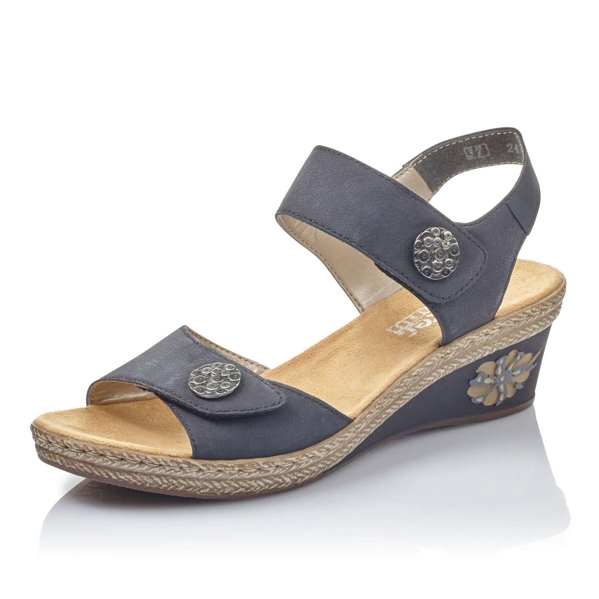 Stylové dámské sandály v tmavě modré barvě jsou zdobeny kovovou aplikací na nártu a na vnější straně kotníku, ale i květinovým vzorkem na vnější straně podpatku. Pásek přes nárt i pásek kolem kotníku jsou obohaceny o zapínání na suchý zip, kterým si obuv doladíte přesně dle Vašich požadavků. Obuv je vhodná na každodenní nošení městem.