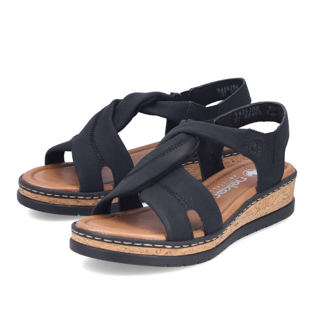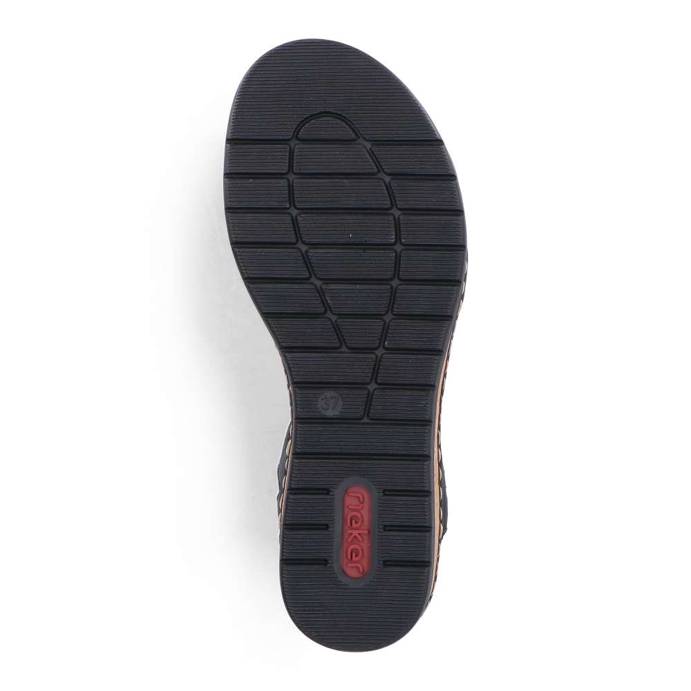 Tyto černé sandály RIEKER jsou skutečným vyjádřením elegance, stylu a pohodlí, které se pojí v jednom modelu. Pásky svršku, precizně navržené a jemně pružné, nejen že působí vizuálně atraktivně, ale také dokonalé obepnou nohu a přizpůsobí se individuálnímu tvaru chodidla. Navíc poskytnou jednoduché nazutí a lehce vkročíte do komfortní stélky. Vyšší klínový podpatek elegantně prodlužuje siluetu nohy a poskytuje stabilitu každým krokem. Sandály RIEKER se tak stávají nejen praktickým doplňkem, ale také výrazem ženského stylu a vkusu, který oceníte při pracovních i volnočasových aktivitách.