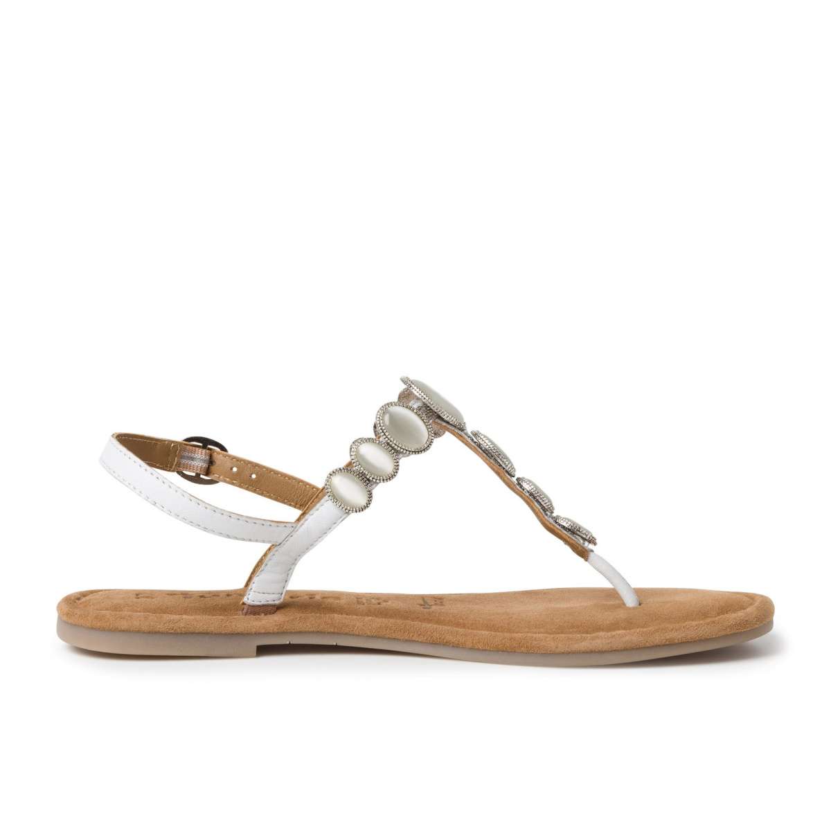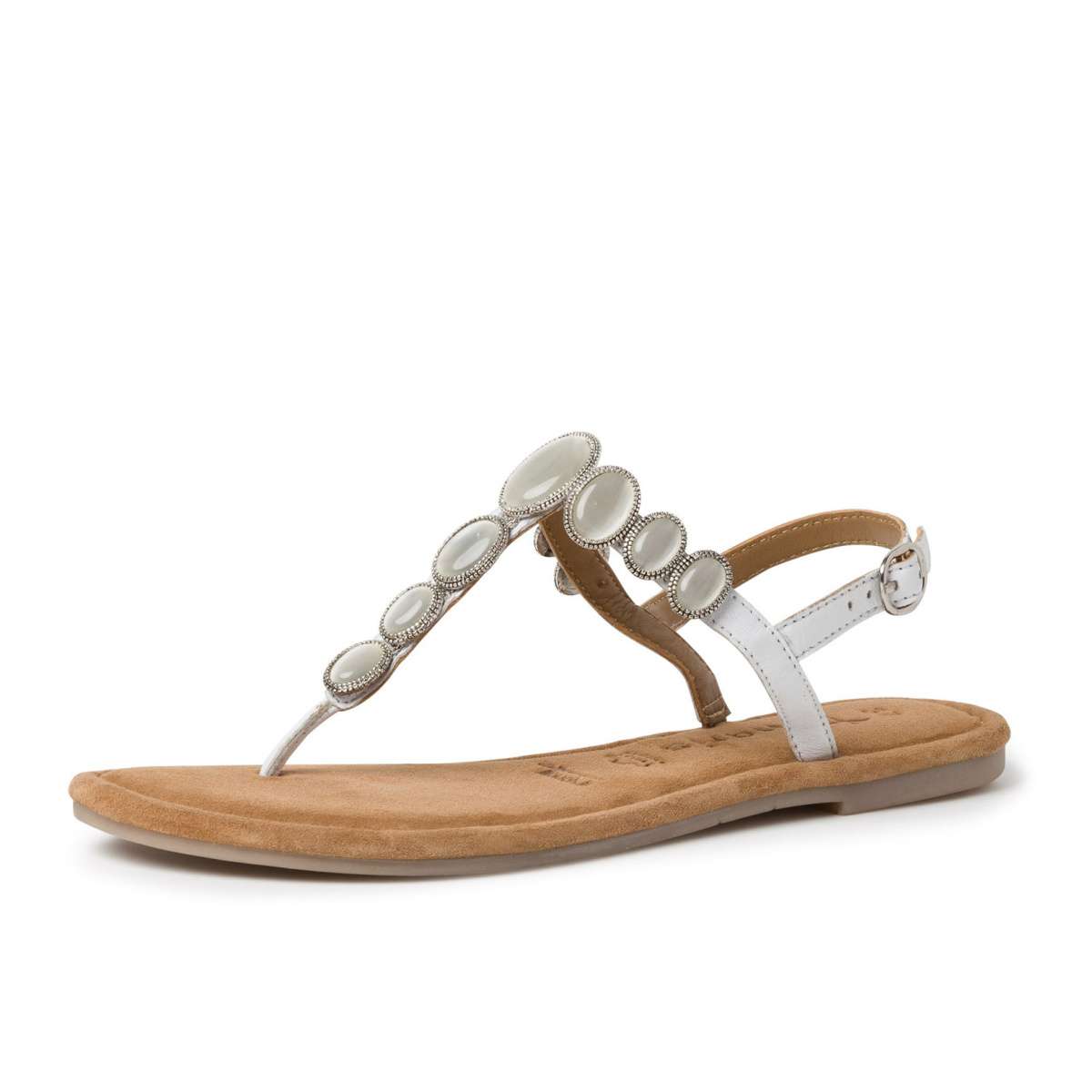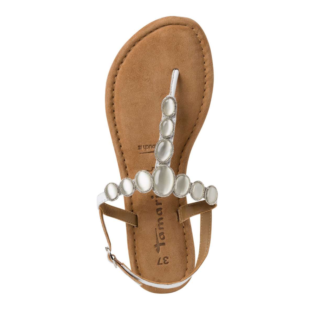 Dámské letní sandálky žabkového stylu zdobené korálky a mušličkami, značky TAMARIS.