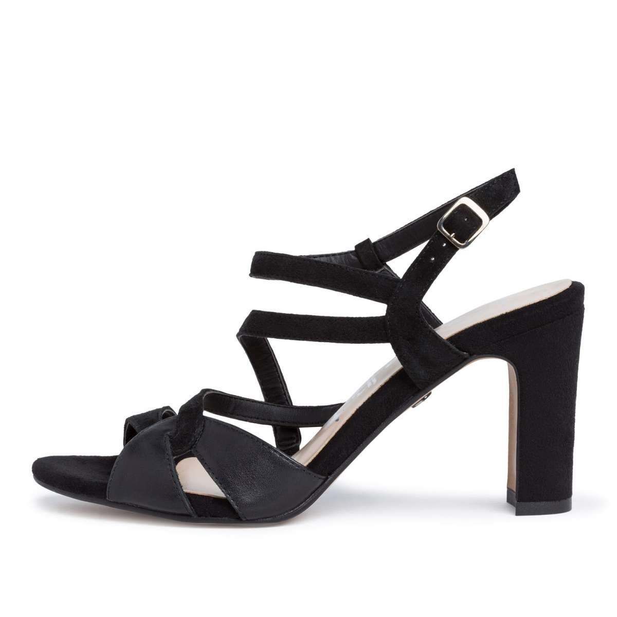 Dámské kožené sandály značky TAMARIS v kombinaci matného a semišového svršku mají středně vysoký podpatek.