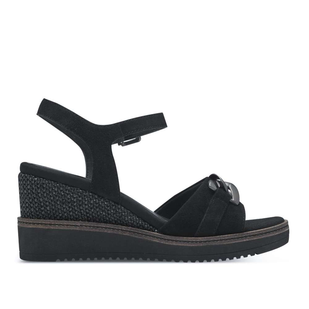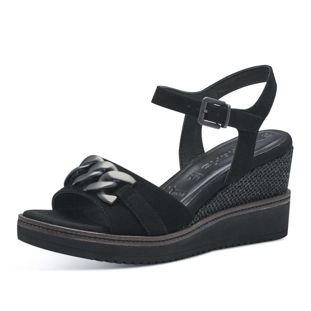 Působivé kožené sandálky Tamaris s výrazným zdobením řetízkem budou zdobit Vaše nohy. Zapínáním přezkou si je upravíte dle svých požadavků a po obutí ucítíte měkkou stélku vyrobenou z paměťové pěny, která se přizpůsobí tvaru nohy. Klínový podpatek je stabilní společník pro elegantní chůzi a pohodlí i při celodenním nošení. Můžete si je obout do práce, na večírek nebo na procházku. Technologie: Touch-it – měkká stélka, která se dokonale přizpůsobí tvaru nohy, a díky tomu při nošení zajišťuje optimální pohodlí.