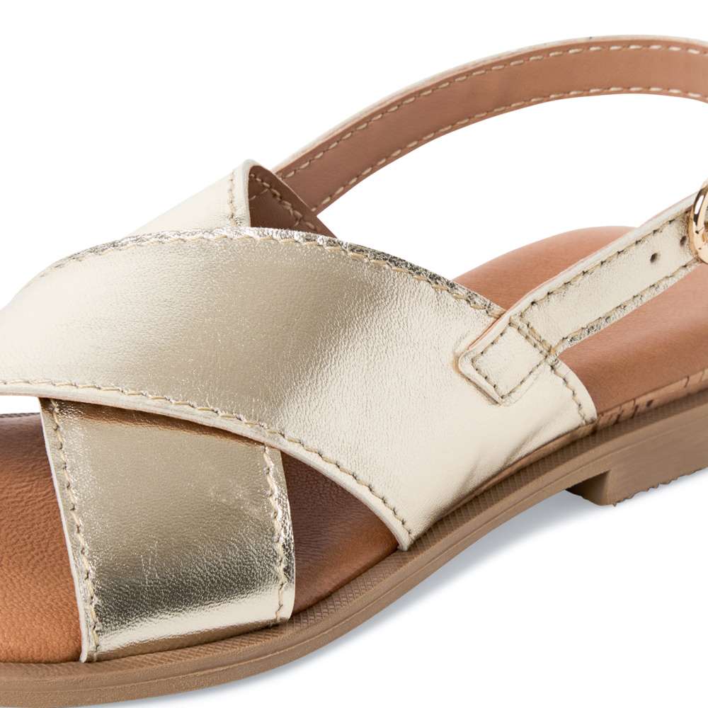 Detailní informace Kožené sandály od značky Tamaris jsou perfektní volba, pokud preferujete pohodlnou, a přitom elegantní chůzi. Okouzlující vzhled zlaté barvy a dvou překřížených pásku přes nárt oceníte zejména při kombinování s Vaším outfitem, budete okouzlující za každé situace. Pásek u kotníku nabízí zapínání sponou, díky které si botu přizpůsobíte na Vaši nohu dle potřeby. Kožená stélka z paměťové pěny zaručuje pohodlí po celý den, a navíc se díky hladkému povrchu snáze čistí. Tyto sandále budou nejen ozdobou vašich nohou, ale i spolehlivým společníkem po celý den.