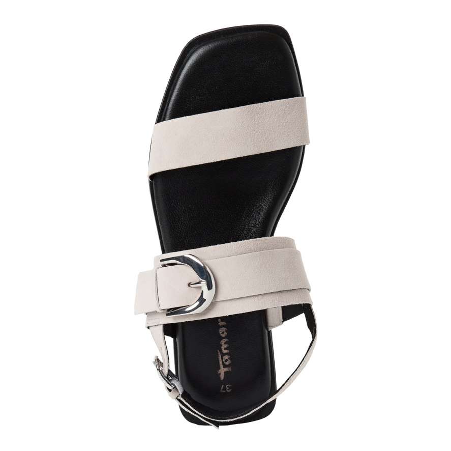 Elegantní sandály značky Tamaris představují spojení jednoduchosti a kvalitního zpracování, díky kterému se stanou spolehlivým doplňkem pro každodenní nošení i speciální příležitosti. Měkký kožený svršek příjemně obepíná chodidlo a společně s koženou stélkou zajišťuje pohodlí po celý den. Nastavitelný pásek kolem paty umožňuje přesné utažení, zatímco decentní kov1-ová spona dodává modelu jemný nádech rafinovanosti. Lehká a tenká podešev podporuje přirozený krok a zároveň zachovává vytříbený vzhled, který snadno zkombinujete s letními šaty i ležérním outfitem.