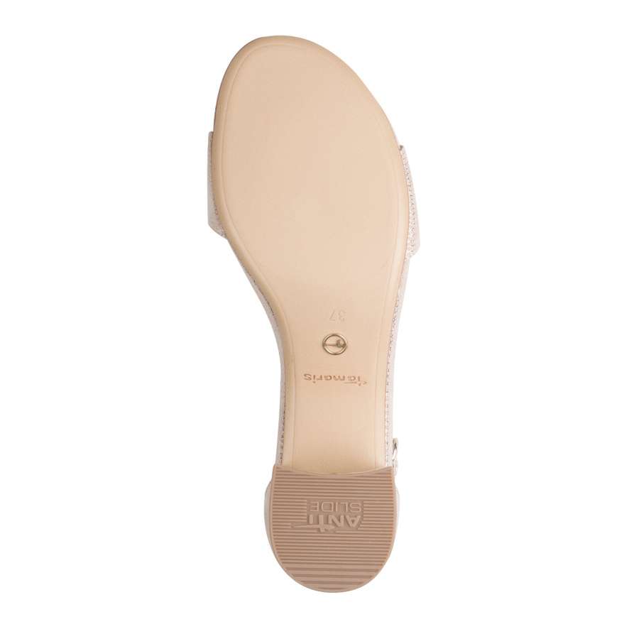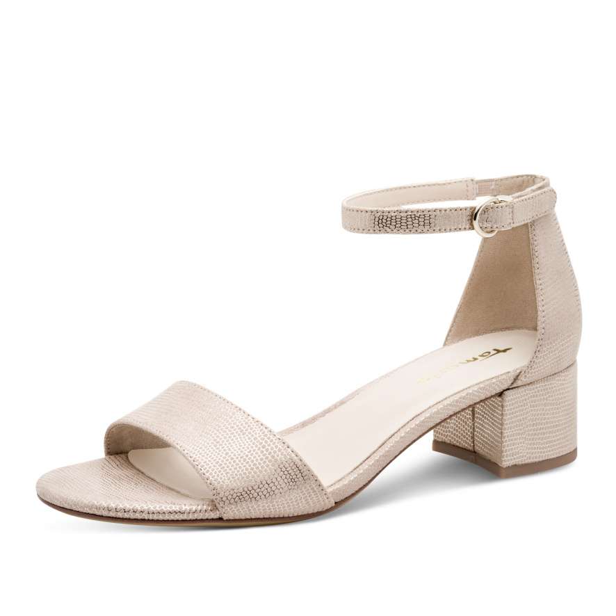 Dokonalou dámu z Vás udělají tyto sandály Tamaris - půvabná kombinace odlesků a hadího vzoru. Kolem kotníku se vine úzký pásek s jemnou zlatou sponou na suchý zip, která umožňuje rychlé zapínání a pohodlné přizpůsobení. Půvab každé z vás pozvedne podpatek, ale díky stabilitě širokého zpracování nebude omezovat při chůzi. Tyto sandály jsou ideální volbou pro každou příležitost, do práce, procházku městem či večerní posezení s přáteli.