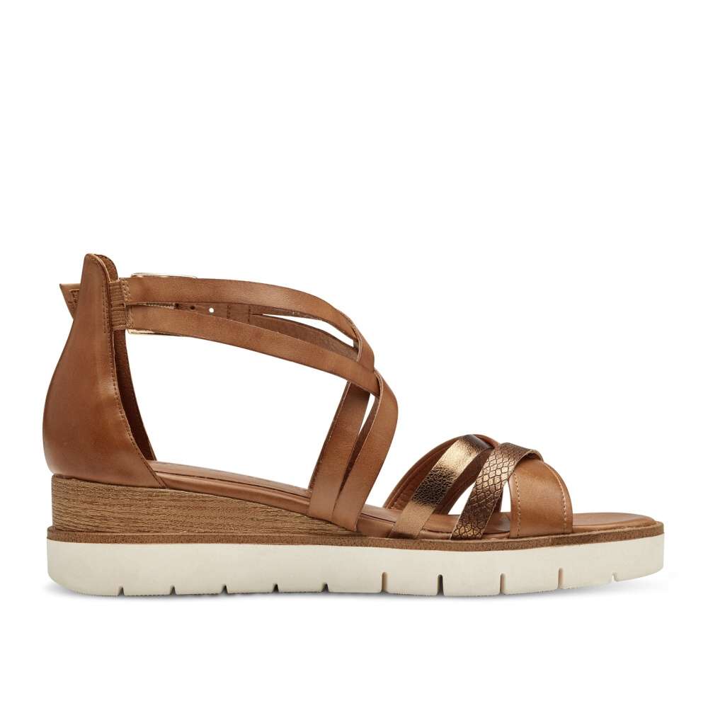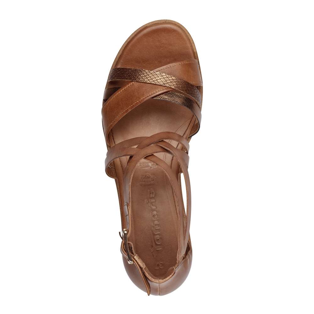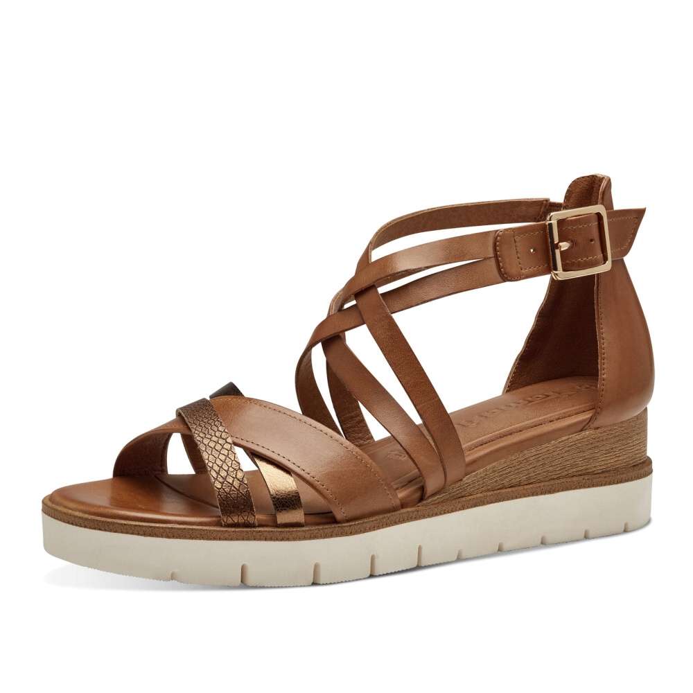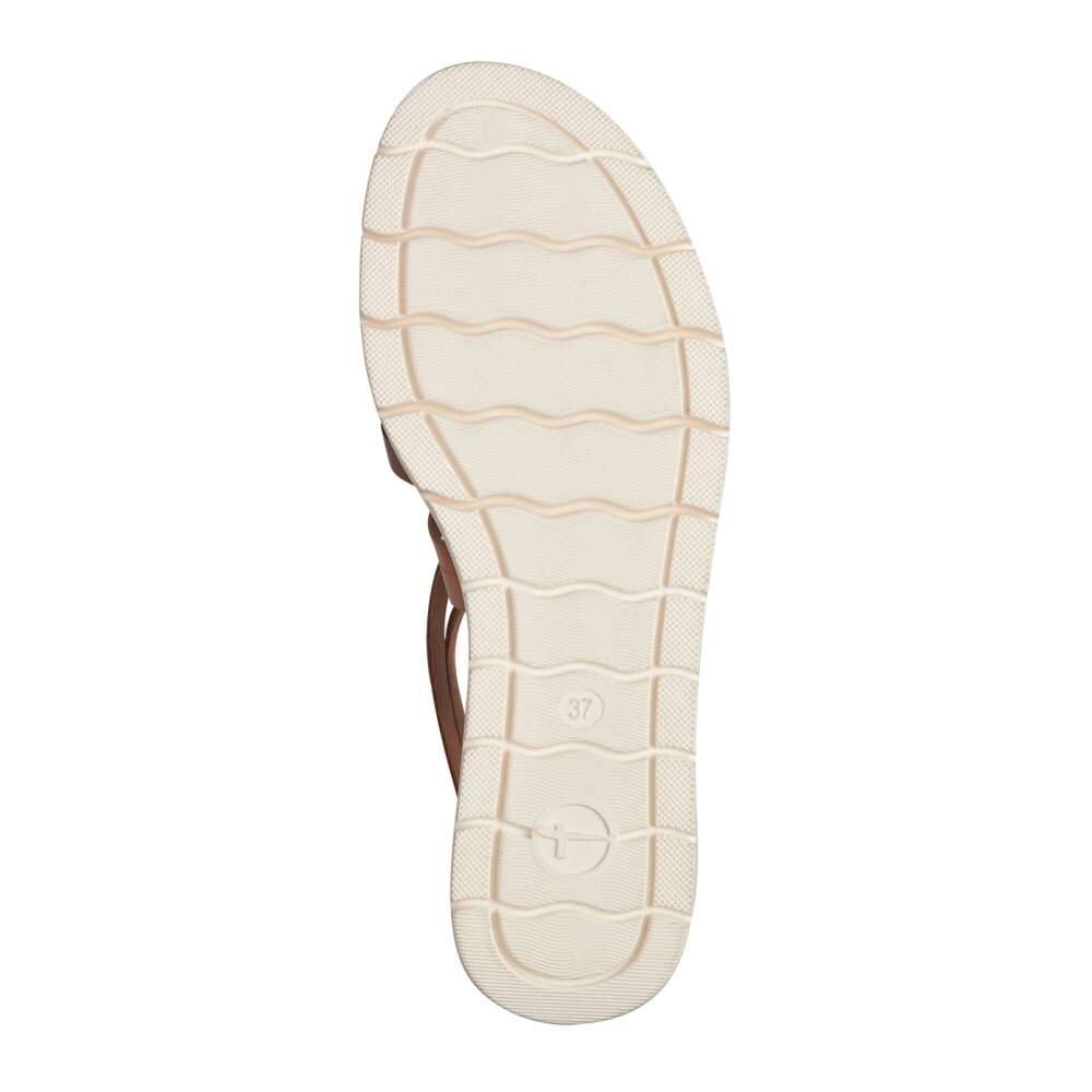Tyto sandálky Tamaris vás nadchnou svým výjimečným designem. Pásky, důmyslně poskládané přes nárt, vytvářejí unikátní a poutavý vzhled, který okouzlí na první pohled. Vyšší barevně kombinovaná podrážka dodává sandálkům moderní prvek a zajistí potřebnou stabilitu. Spona u kotníku zajišťuje snadné obouvání, zatímco měkká stélka z paměťové pěny se postará o maximální pohodlí. Tyto hnědé sandálky jsou ideální volbou pro ty, kteří hledají elegantní a moderní obuv pro každý den.