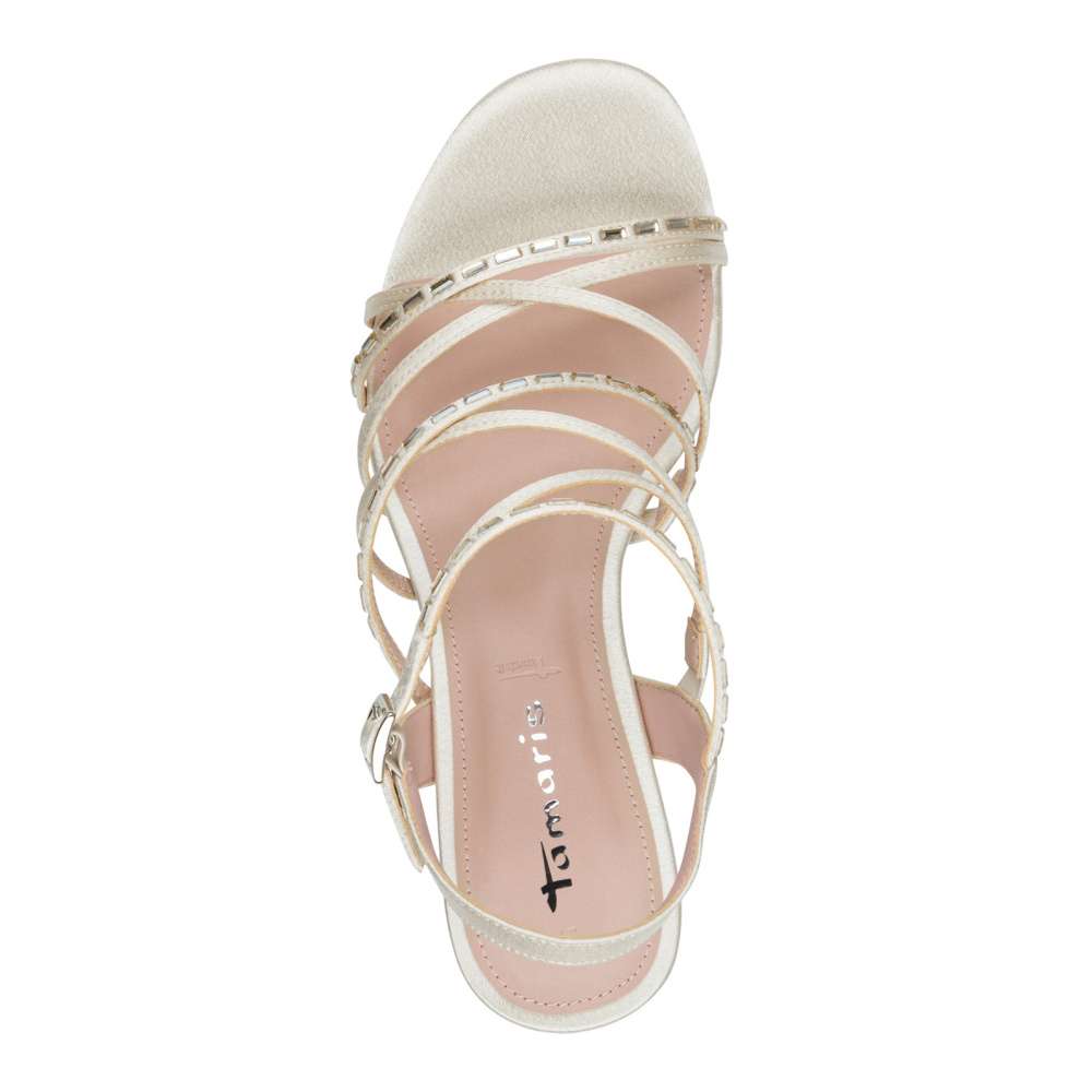 Ozdobou vašich nohou se stanou tyto sandále Tamaris, které dokonale spojují eleganci a moderní ženskost. Efektně poskládané pásky zdobí lesklé aplikace, které dodají vašemu vzhledu luxusní třpyt. Pásek s nastavitelnou sponou zajistí dokonalé přizpůsobení a měkká stélka se postará o komfort, takže si můžete užívat eleganci bez nepohodlí. Široký podpatek prodlouží siluetu a dodá vám ladnost i stabilitu, zatímco protiskluzová úprava poskytne jistotu při každém kroku. Tyto sandále Tamaris zvýrazní Váš žensky půvab při každé příležitosti.