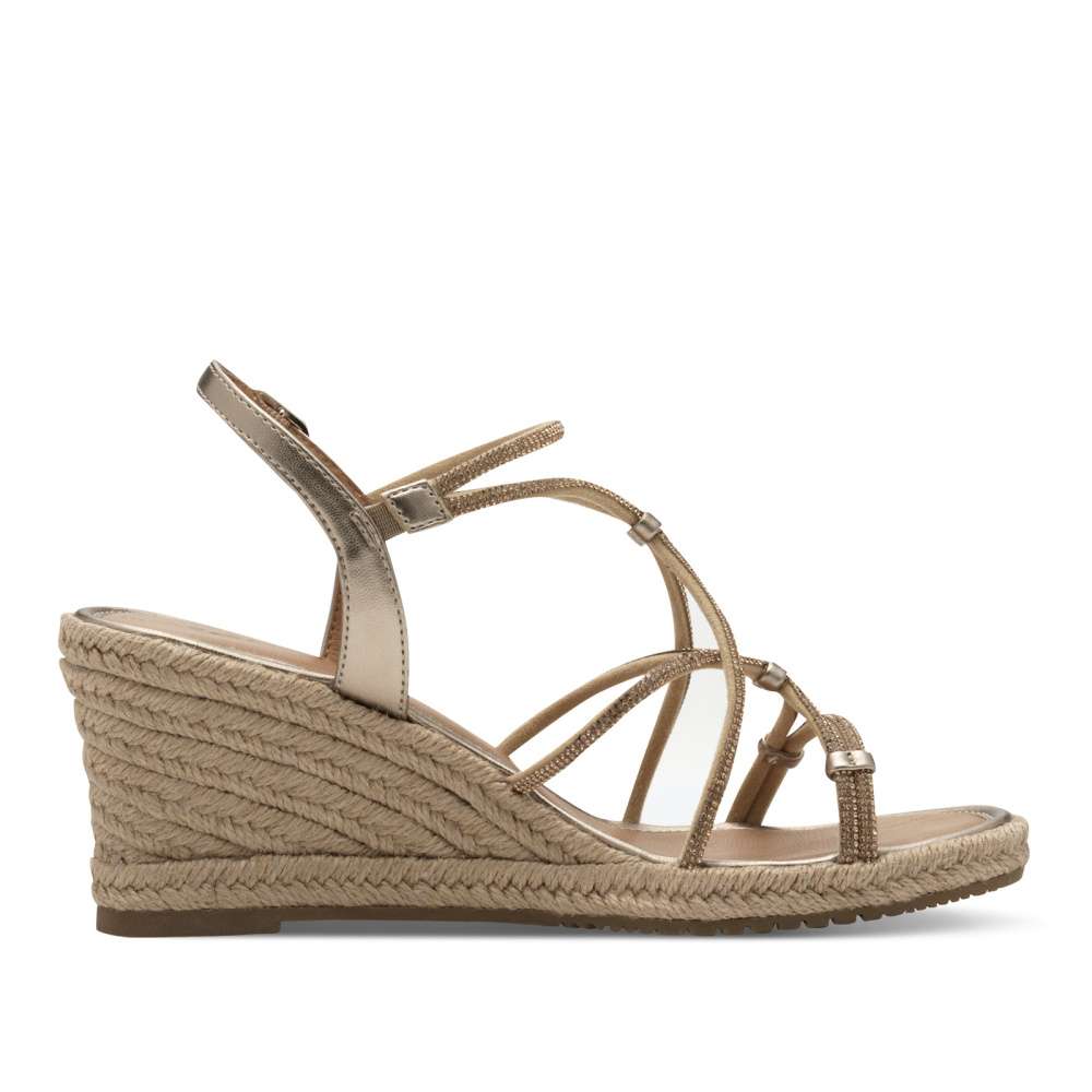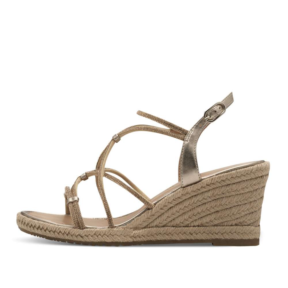Detailní informace Tyto sandálky od značky Tamaris jsou dokonalou kombinací elegance a pohodlí, s jejich tenkými pásky zdobenými třpytivými kamínky budete vypadat úchvatně. Lehký a vzdušný design Vám umožní cítit se svěže a komfortně i při vysokých teplotách. Spona u kotníku umožňuje snadné nazutí a příjemná stélka dodává maximální pohodlí Vašim nohám. Vyšší podešev s prvkem anti-slide zabraňuje uklouznutí a zajišťuje stabilní chůzi po celý den nošení. Tyto krásky jsou skvělou volbou k letním lehkým šatům.