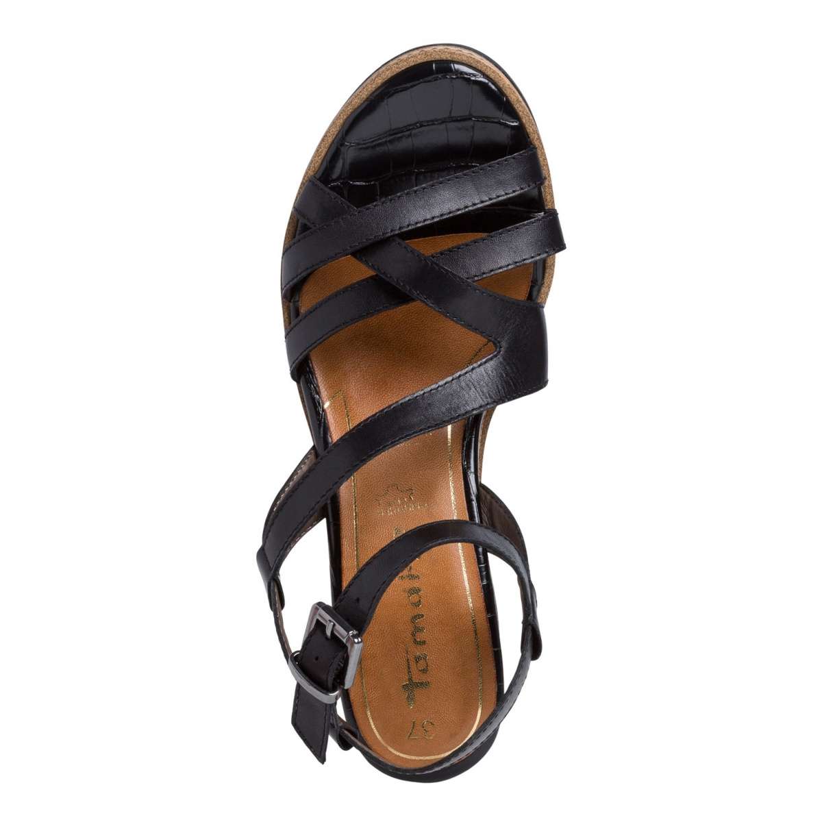 Dámské kožené sandály značky TAMARIS zdobené pásky, mají hladký povrch a kulatou špičku.