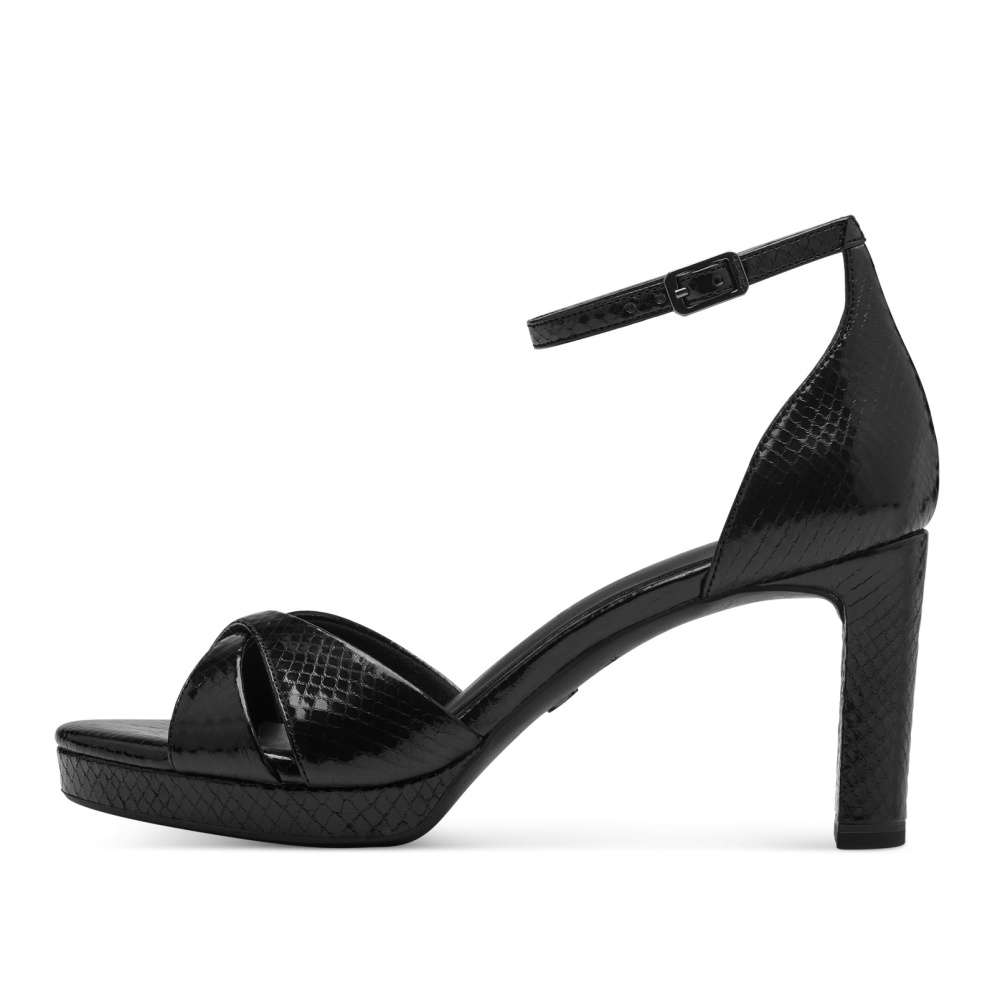 Tyto nádherné sandálky značky Tamaris jsou kombinací lesku, pohodlí a elegance. Lesklý svršek s jemným vzorem přidává luxusní vzhled, který okouzlí každého a vysoký podpatek s protiskluzovou úpravou dodává vašemu kroku eleganci. Spona u kotníku usnadňuje proces nazouvání a vklouznete do měkké stélky z paměťové pěny, která zajistí pohodlí a podporu po celý den i noc. Tyto sandálky jsou ideální volbou, pokud hledáte kombinaci luxusu a pohodlí. Technologie: Stélka Touch-it – měkká stélka, která se dokonale přizpůsobí tvaru nohy, a díky tomu při nošení zajišťuje optimální pohodlí. ANTISLIDE – obuv s patentovaným protiskluzovým prvkem v podpatku, který výrazným způsobem snižuje riziko uklouznutí na kluzkém povrchu.