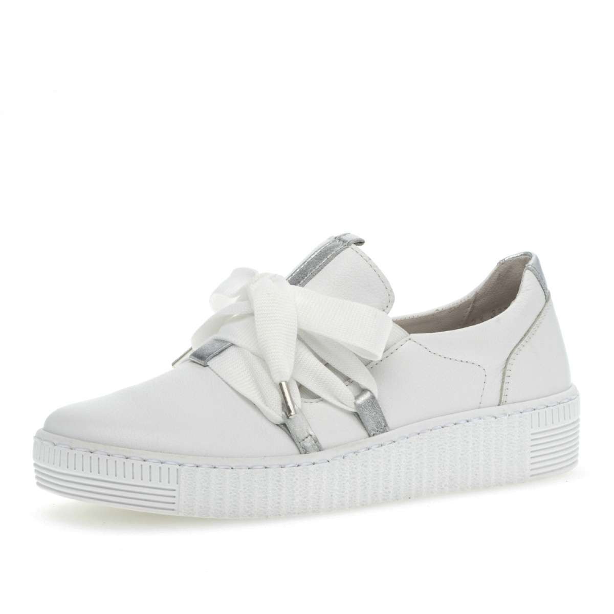 Jednoduché dámské tenisky značky Gabor Vás zaujmou na první pohled. Zdobným prvkem, je zde kontrastní uchycení tkaniček, které mají pouze estetický účel. Pro snadné nazouvání slouží pružné gumičky, umístěné po stranách obuvi. Můžete si je obout k jakémukoli outfitu, ať již k jeansům či k sukni.