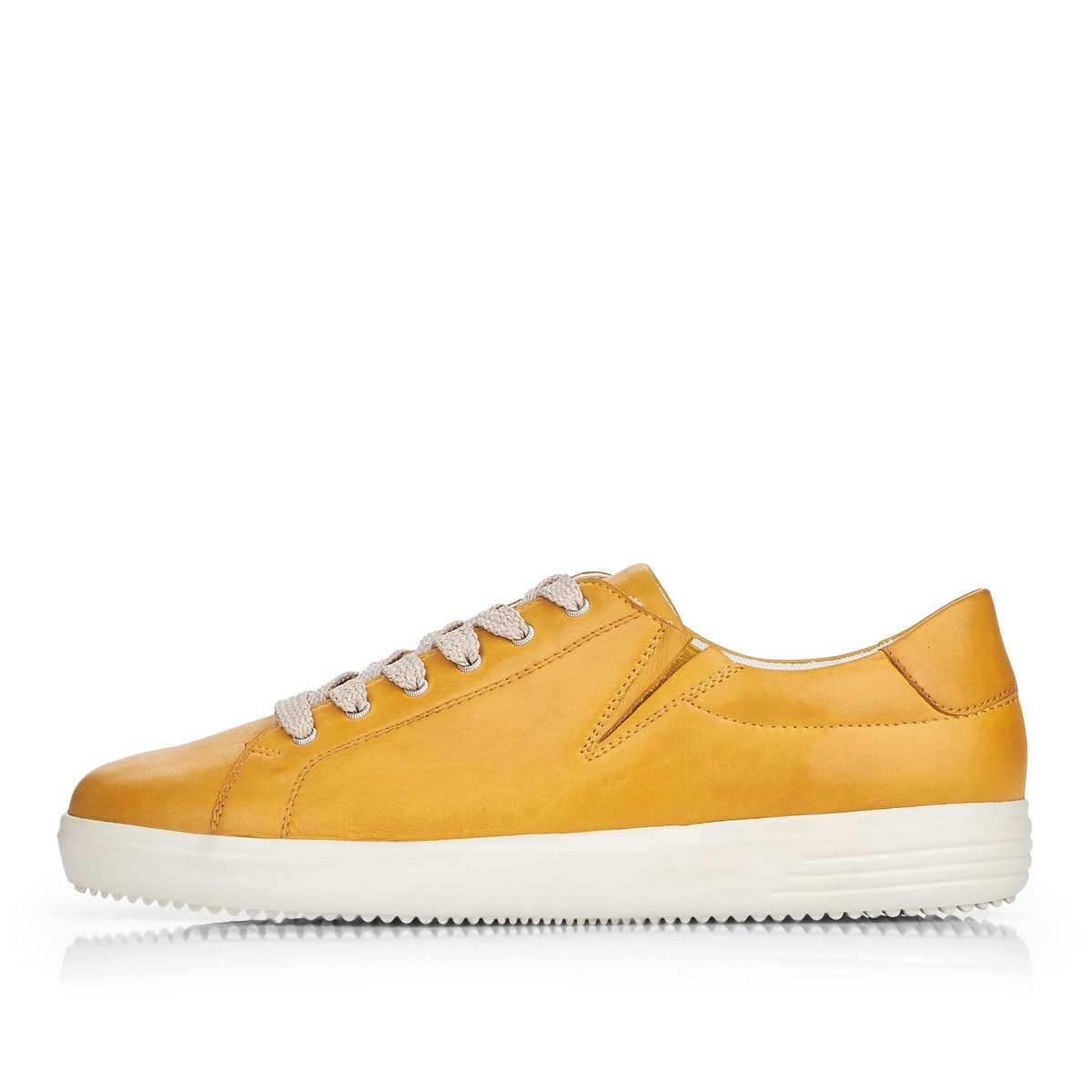 Dámské tenisky od značky REMONTE (vyšší řada značky RIEKER) Vás zaujmou svým hladkým svrškem z přírodní usně vyrobeny ve více barevných variantách. Boty si můžete utáhnout přesně podle Vašich představ, díky tkaničkám na šněrování. Obuv, která se bude hodit snad ke každému outfitu z Vaší skříně.