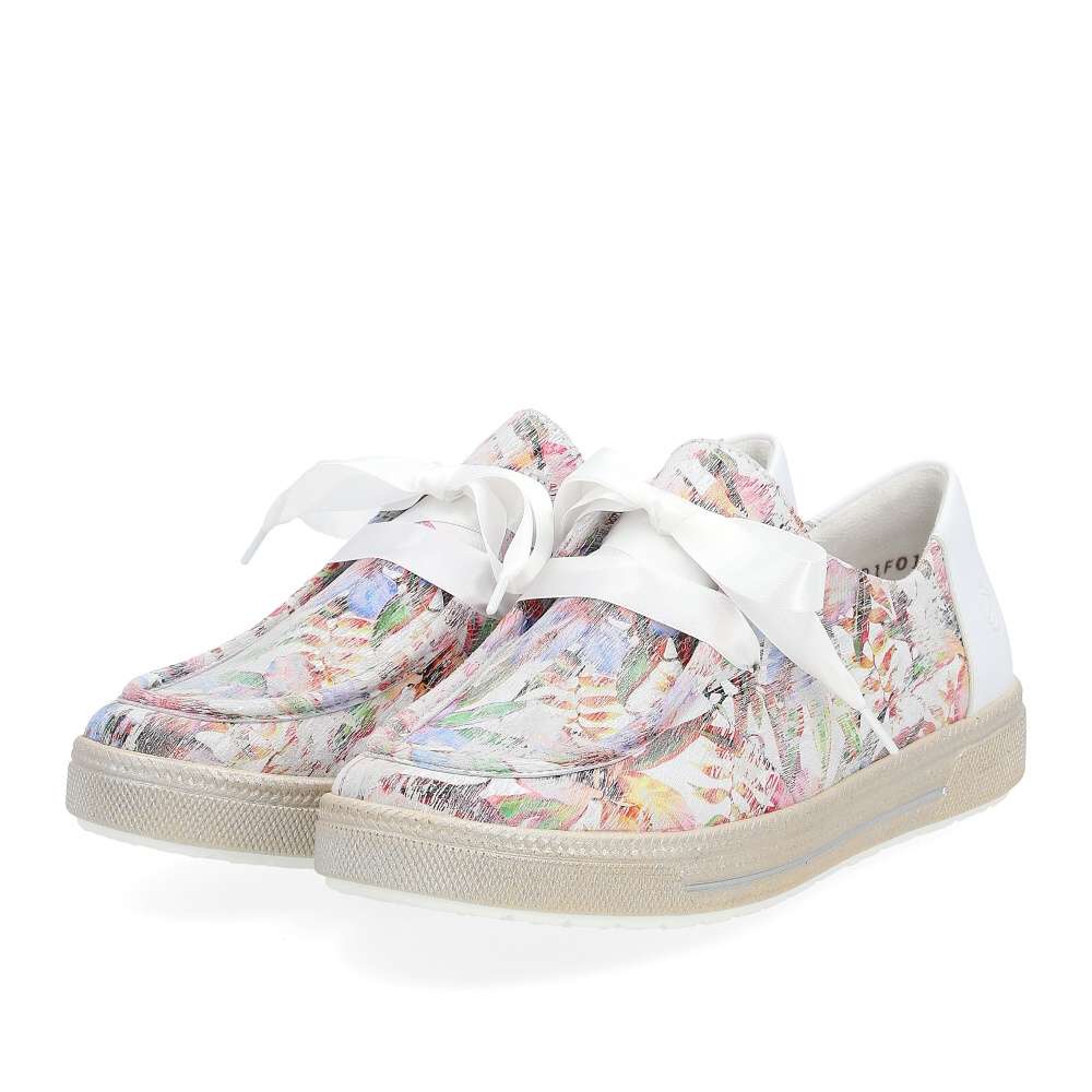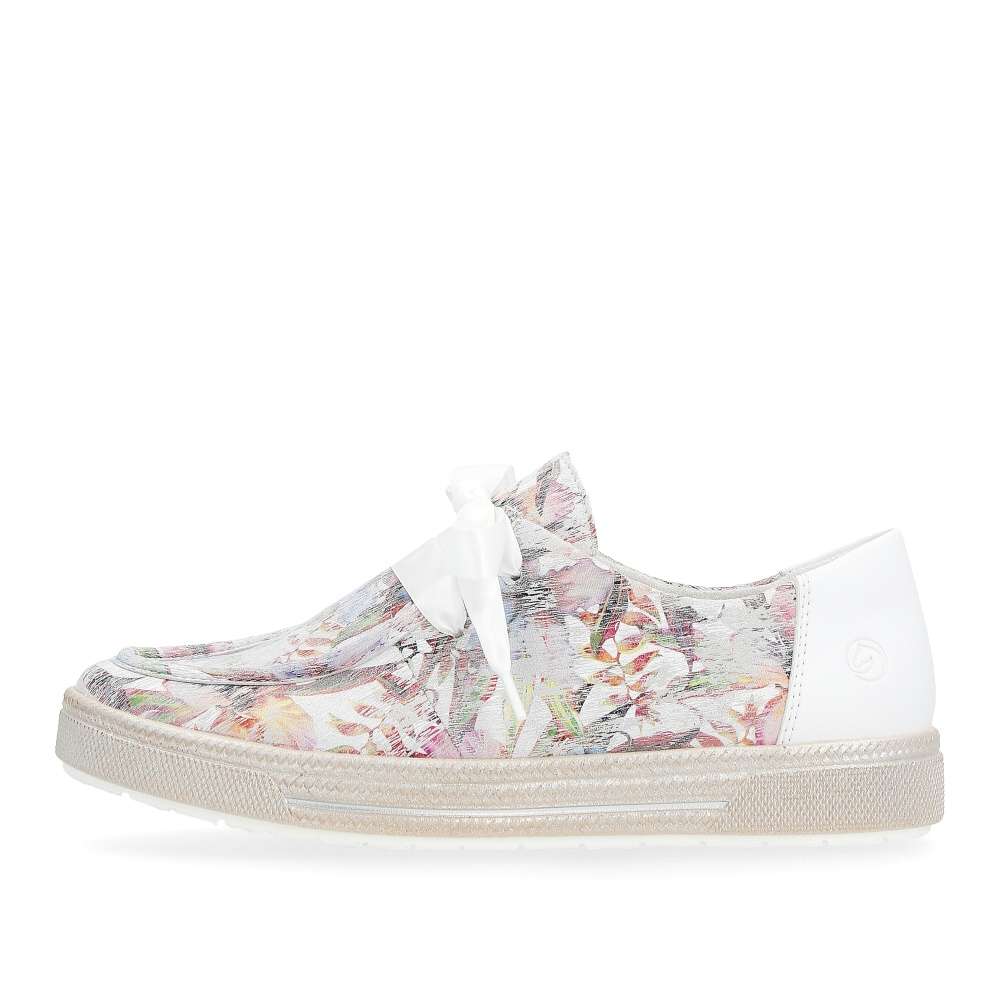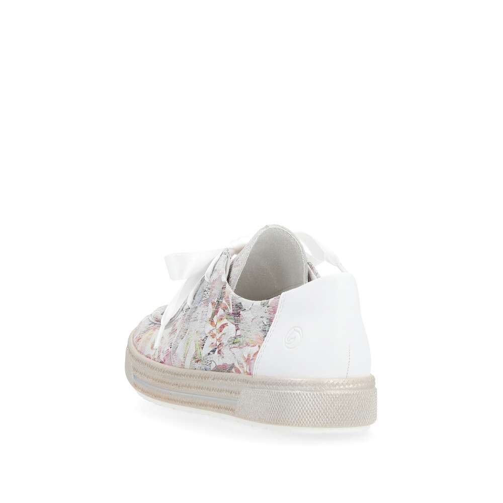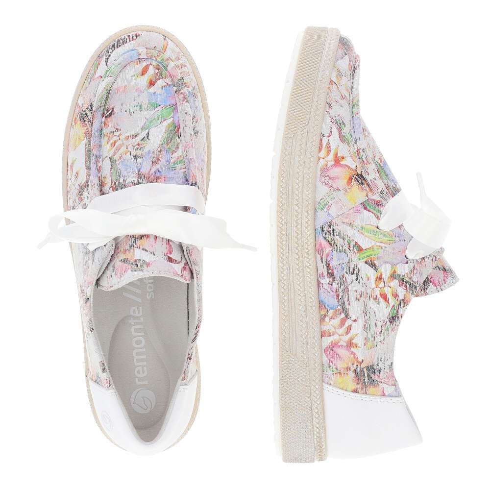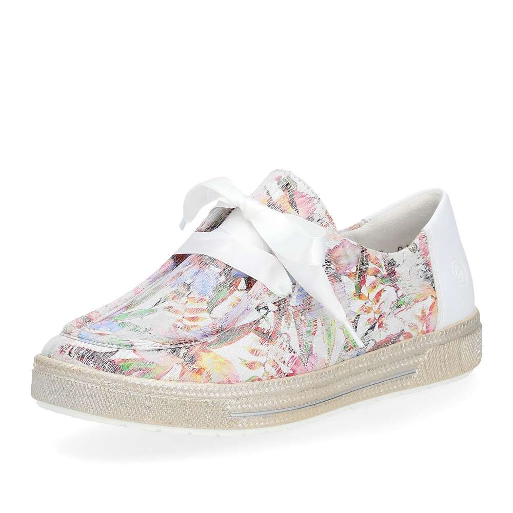 Obuv REMONTE je vyšší řadou značky RIEKER, obuv se vyznačuje kvalitou použitých materiálů. Tyto jedinečné kožené tenisky přinášejí do světa obuvi zcela nový rozměr. S barevným potiskem, patní bílou částí a šněrováním stuhou nabízí atraktivní a originální design. Měkkou stélku lze vyjmout a zajišťuje maximální pohodlí pro vaše nohy. Tyto tenisky nejen odrážejí stylový a kvalitní přístup, ale také poskytují unikátní výraz pro každou příležitost. Technologie: Remonte Soft – unikátní stélka vyrobená z prodyšného materiálu, která svým tvarem a materiálem zajistí pocit pohodlí při celodenním nošení. Tato bota je vybavena vyjímatelnou stélkou. Lite´n Soft – kombinace ultralehké podešve a měkké stélky pro komfortní pocit při chůzi.