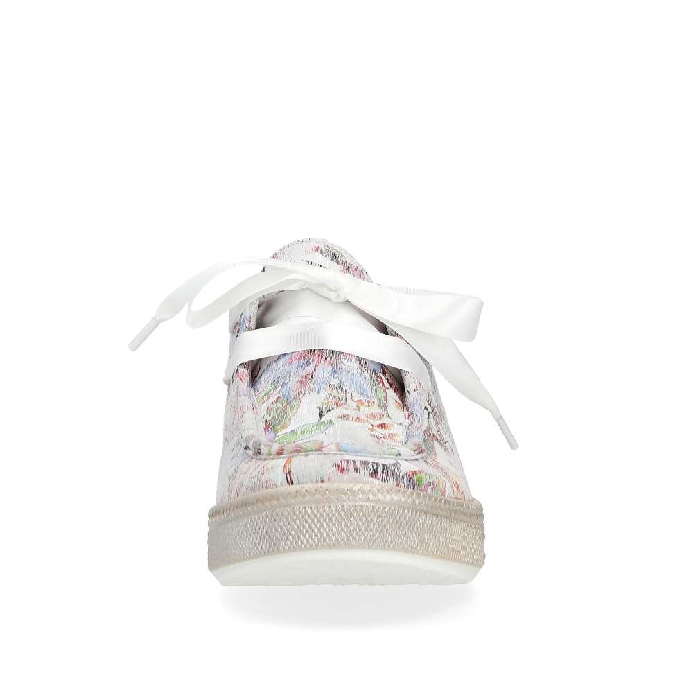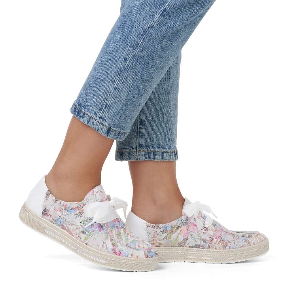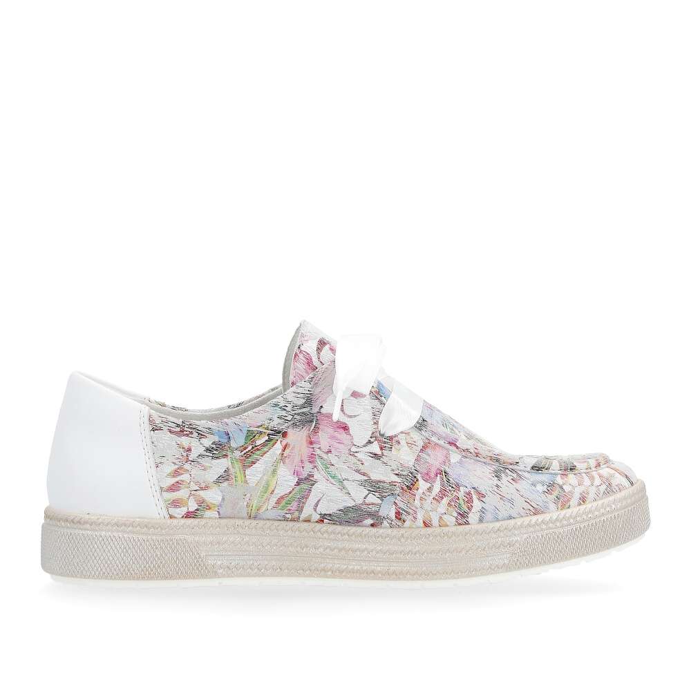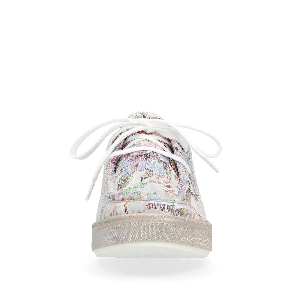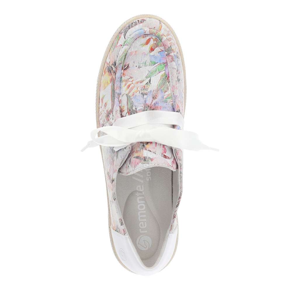 Obuv REMONTE je vyšší řadou značky RIEKER, obuv se vyznačuje kvalitou použitých materiálů. Tyto jedinečné kožené tenisky přinášejí do světa obuvi zcela nový rozměr. S barevným potiskem, patní bílou částí a šněrováním stuhou nabízí atraktivní a originální design. Měkkou stélku lze vyjmout a zajišťuje maximální pohodlí pro vaše nohy. Tyto tenisky nejen odrážejí stylový a kvalitní přístup, ale také poskytují unikátní výraz pro každou příležitost. Technologie: Remonte Soft – unikátní stélka vyrobená z prodyšného materiálu, která svým tvarem a materiálem zajistí pocit pohodlí při celodenním nošení. Tato bota je vybavena vyjímatelnou stélkou. Lite´n Soft – kombinace ultralehké podešve a měkké stélky pro komfortní pocit při chůzi.