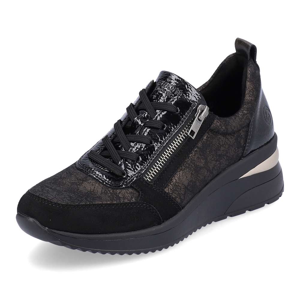 Detailní informace Obuv REMONTE – jedná se o vyšší řadu značky RIEKER, tato obuv se vyznačuje vynikající kombinací svrchních materiálů. Tento model tenisek je navržen tak, aby vyhovoval potřebám dnešní moderní ženy. Svršek obuvi je unikátní díky spojení různě vzorovaných částí a lesklých prvků. Snadno si obuv obujete díky šněrování a zipu na nártu. Potřebný komfort zajistí vyjímatelná měkká stélka a podešev svým kontrastním vzhledem doladí vzhled obuvi k dokonalosti a tyto tenisky zaručeně skvěle doplní Vaše oblečení ať už do práce nebo na pochůzky městem.