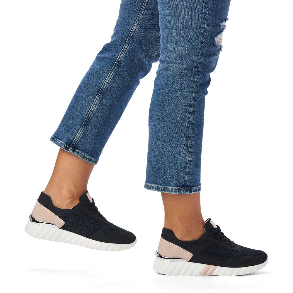 Detailní informace Obuv REMONTE – jedná se o vyšší řadu značky RIEKER, tato obuv se vyznačuje vynikající kombinací svrchních materiálů. Tyto tenisky spojují eleganci a stylovost proto by neměly chybět ve Vašem botníku. Zaručeně oceníte jednoduchý, ale zároveň stylový vzhled svršku, který je ozdoben jemným prošíváním a lesklou aplikací za patou. Snadné přizpůsobení dle Vašich požadavků zaručí šněrování tkaničkami. Pro Vaše maximální pohodlí na každém kroku je paměťová stélka, která je zároveň i vyjímatelná. Tento model tenisek oceníte na Vašich procházkách městem a skvěle budou vypadat snad se všemi outfity.