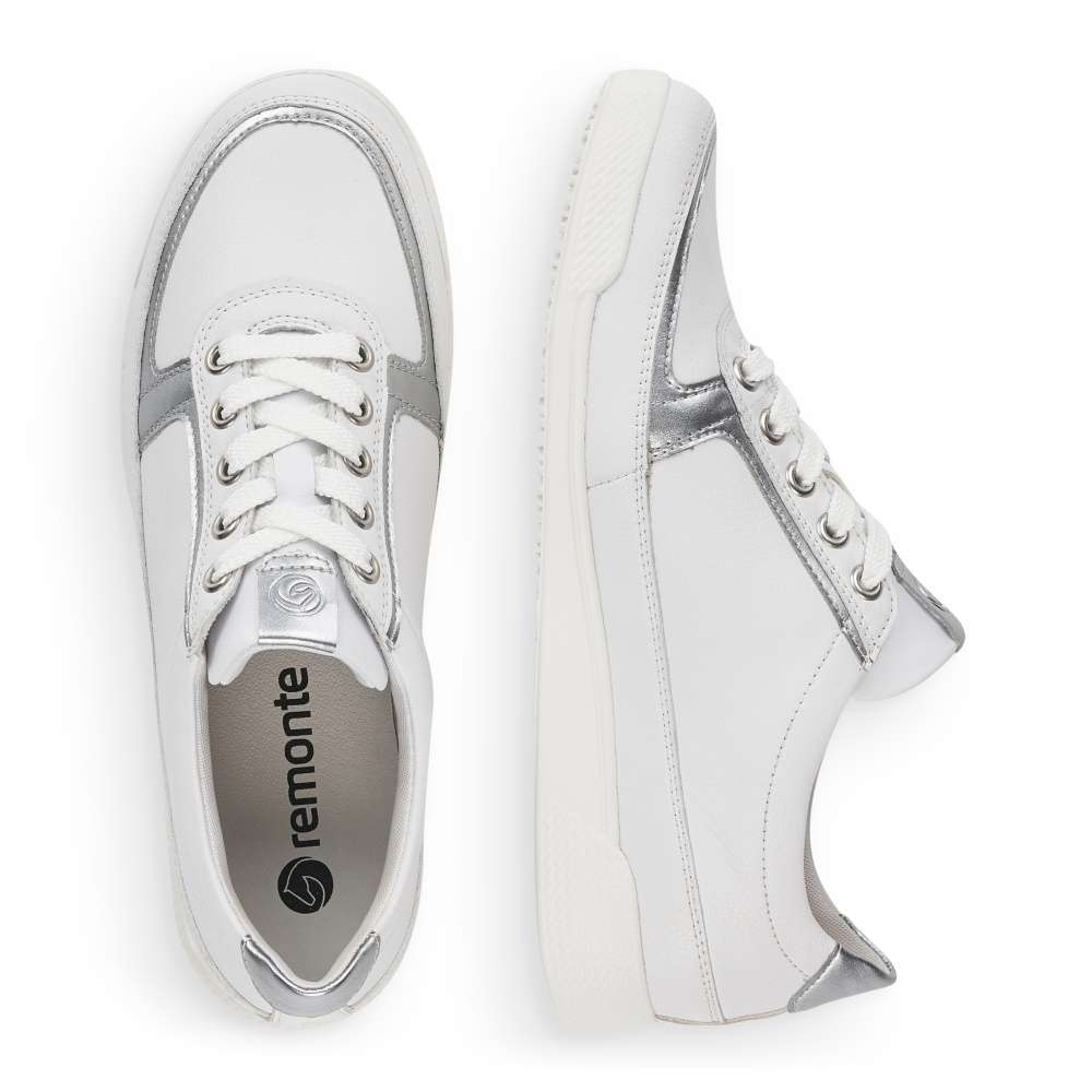 Obuv REMONTE – jedná se o vyšší řadu značky RIEKER, tato obuv se vyznačuje vynikající kombinací svrchních materiálů. Šněrováním si obuv snadno přizpůsobíte dle požadavků díky perfektní tkaničce. Stříbrné detaily na části bot a zdobené logem značky REMONTE. Tyto botky zkombinujete úžasně jak s kalhotami, tak i sukní.