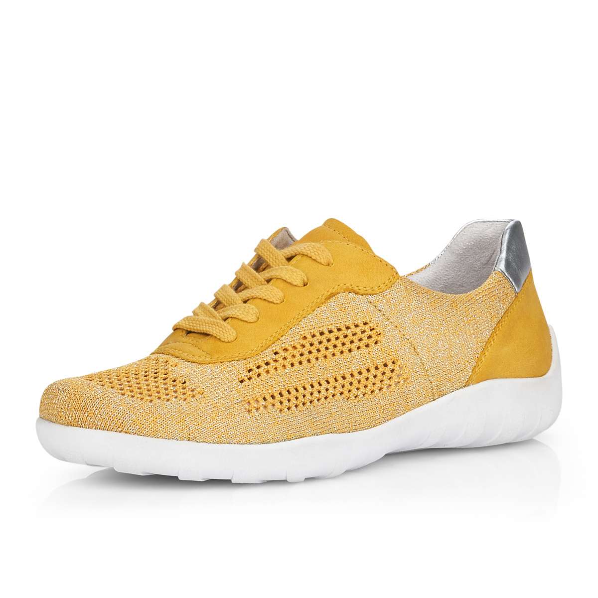 Sportovní tenisky značky REMONTE, budou skvěle vypadat k jakémukoliv Vašemu outfitu a poslouží jako dobrý společník při procházkách. Svršek v pestrých barvách doplněn metalickým vzhledem, šněrování, kontrastní podešev ve výšce cca 1,7 cm, je to pravé pro Vaše maximální pohodlí. Obuv má vyjímatelnou stélku a to je to, co jistě oceníte. Tenisky můžete nosit jak do práce, tak i na toulky městem.
