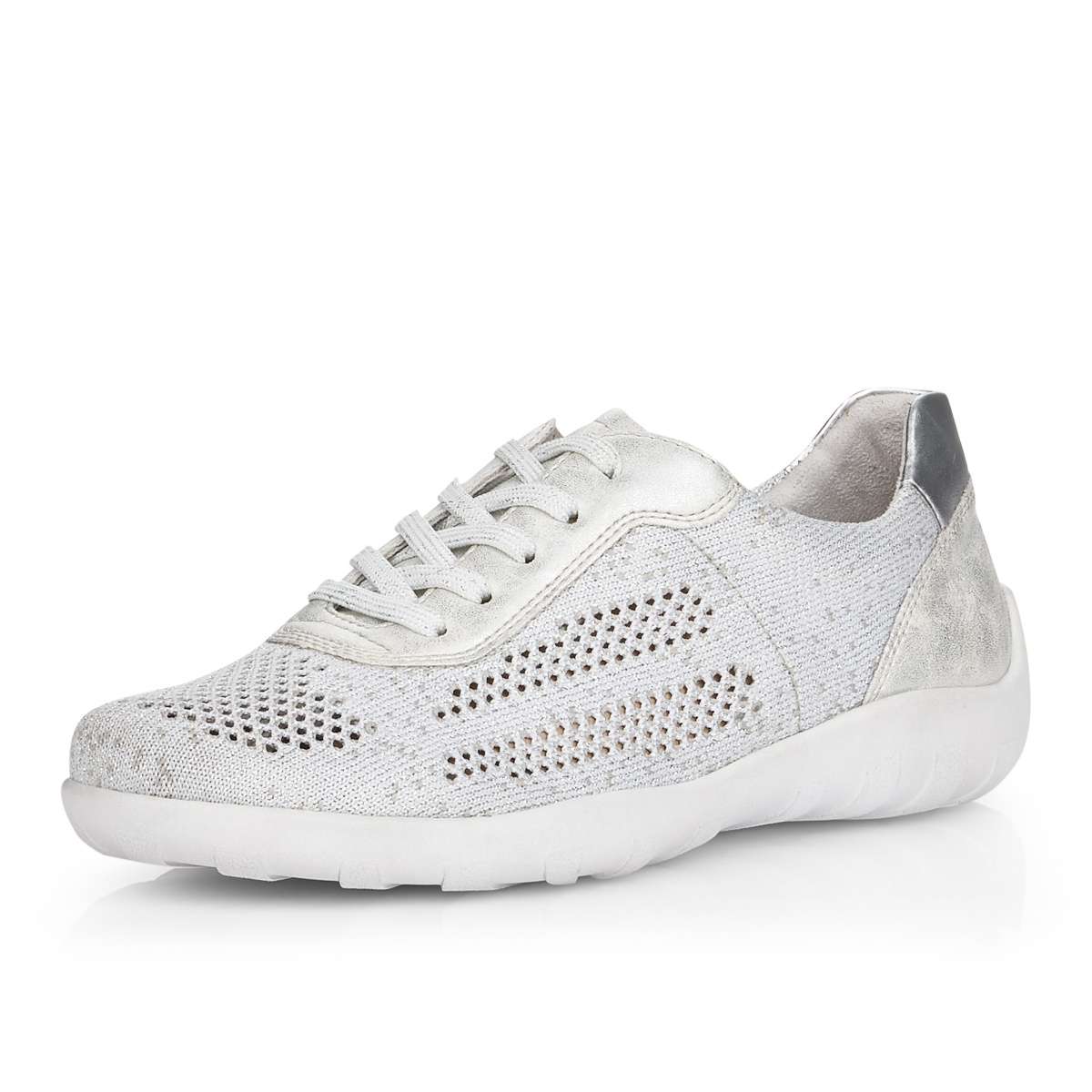 Sportovní tenisky značky REMONTE, budou skvěle vypadat k jakémukoliv Vašemu outfitu a poslouží jako dobrý společník při procházkách. Svršek ve světlé barvě doplněn metalickým vzhledem, šněrování, kontrastní podešev ve výšce cca 1,7 cm, je to pravé pro Vaše maximální pohodlí. Obuv má vyjímatelnou stélku a to je to, co jistě oceníte. Tenisky můžete nosit jak do práce, tak i na toulky městem.