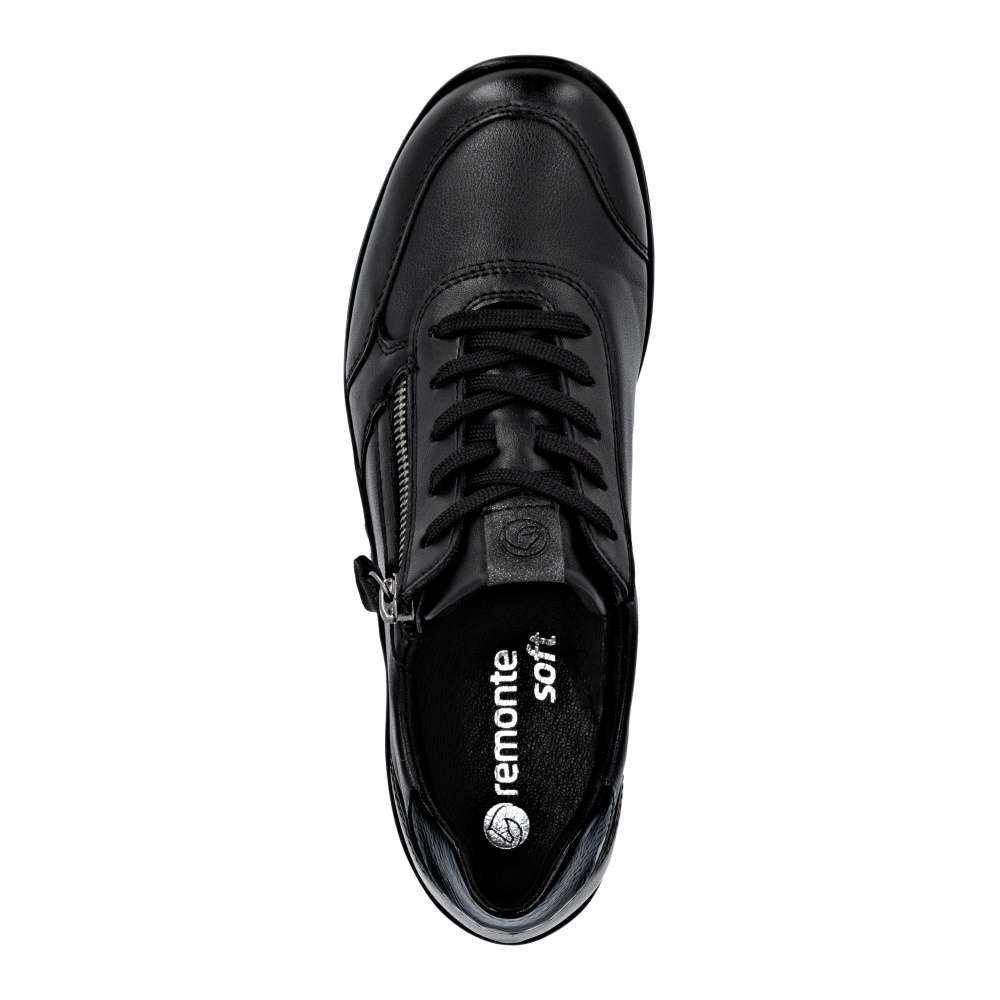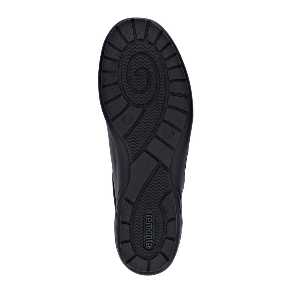 Obuv REMONTE – jedná se o vyšší řadu značky RIEKER, tato obuv se vyznačuje vynikající kombinací svrchních materiálů. Tato dámská teniska značky RIEKER je spojením moderního designu a pohodlí, které oceníte každý den. Černý svršek zdobí zajímavé linie prošití a lesklý prvek v části paty. Praktické šněrování spolu s funkčním zipem na nártu umožňují snadné obutí i individuální přizpůsobení podle potřeby. Celodenní komfort poskytne kožená vyjímatelná stélka. Díky svému jedinečnému vzhledu se tyto tenisky skvěle hodí k různým outfitům – ať už do práce, na nákupy nebo volný čas. Technologie: Tato bota je vybavena vyjímatelnou stélkou.