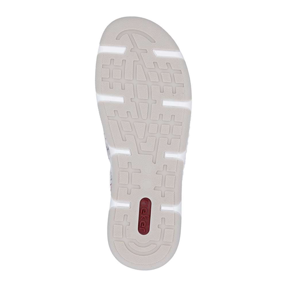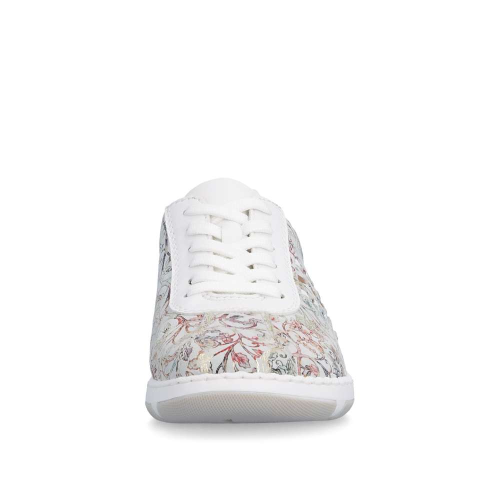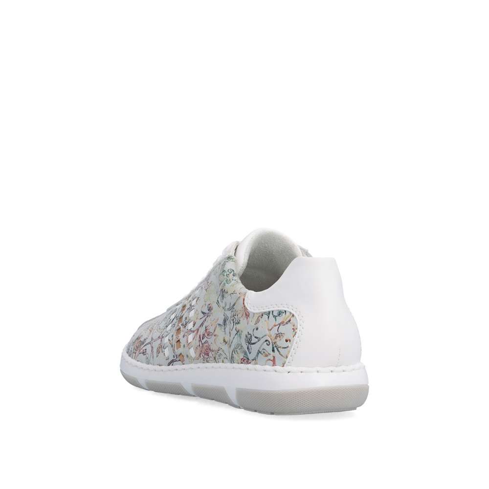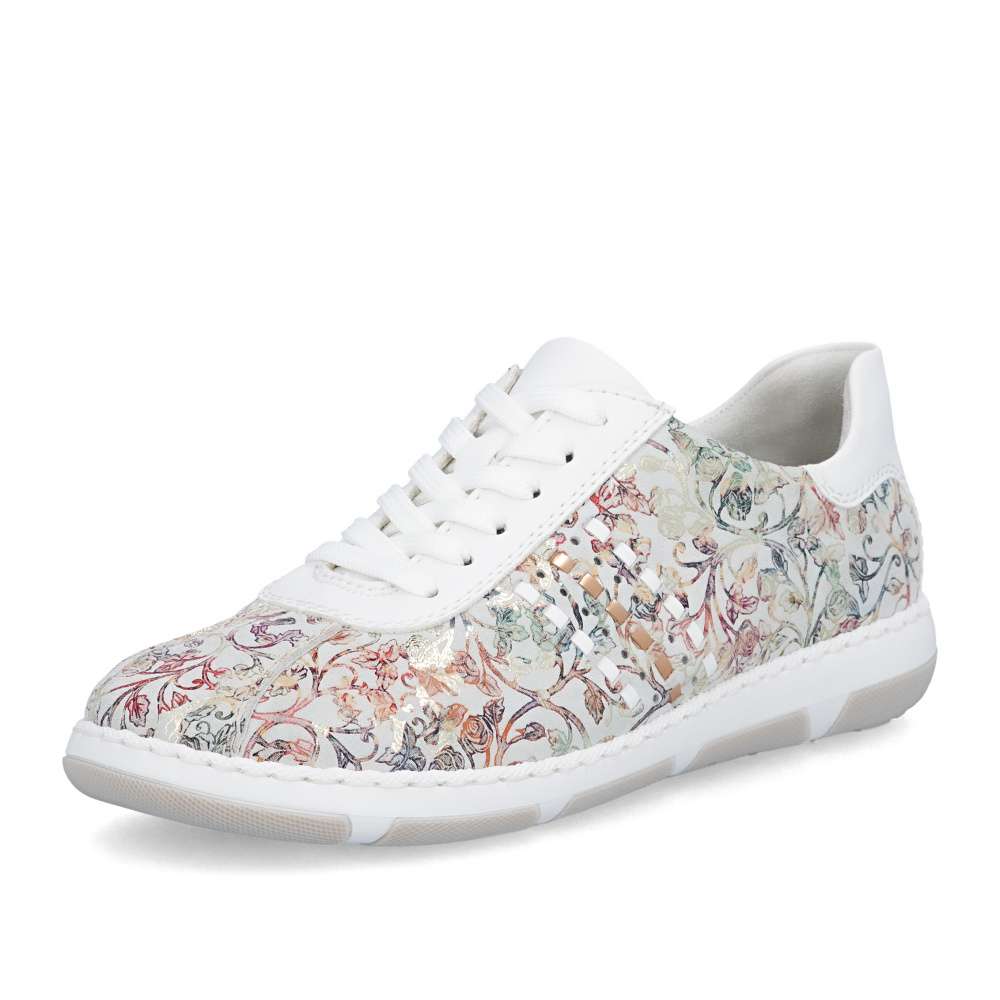 Tyto stylové tenisky od značky Rieker budou skvělým doplňkem do každého botníku. Svršek s barevným květinovým vzorem je obohacen o kontrastní bílé části, které poskytují obuvi svěží a moderní vzhled. Šněrování Vám umožní snadné a rychlé přizpůsobení obuvi, dle požadavků. Vyjímatelná měkká stélka a širší střih bot dodává pohodlí při nošení, což je důležité pro dlouhodobou pohodu při chůzi. Tyto boty si zamilujete a již prostě nebude chtít nosit žádné jiné.
