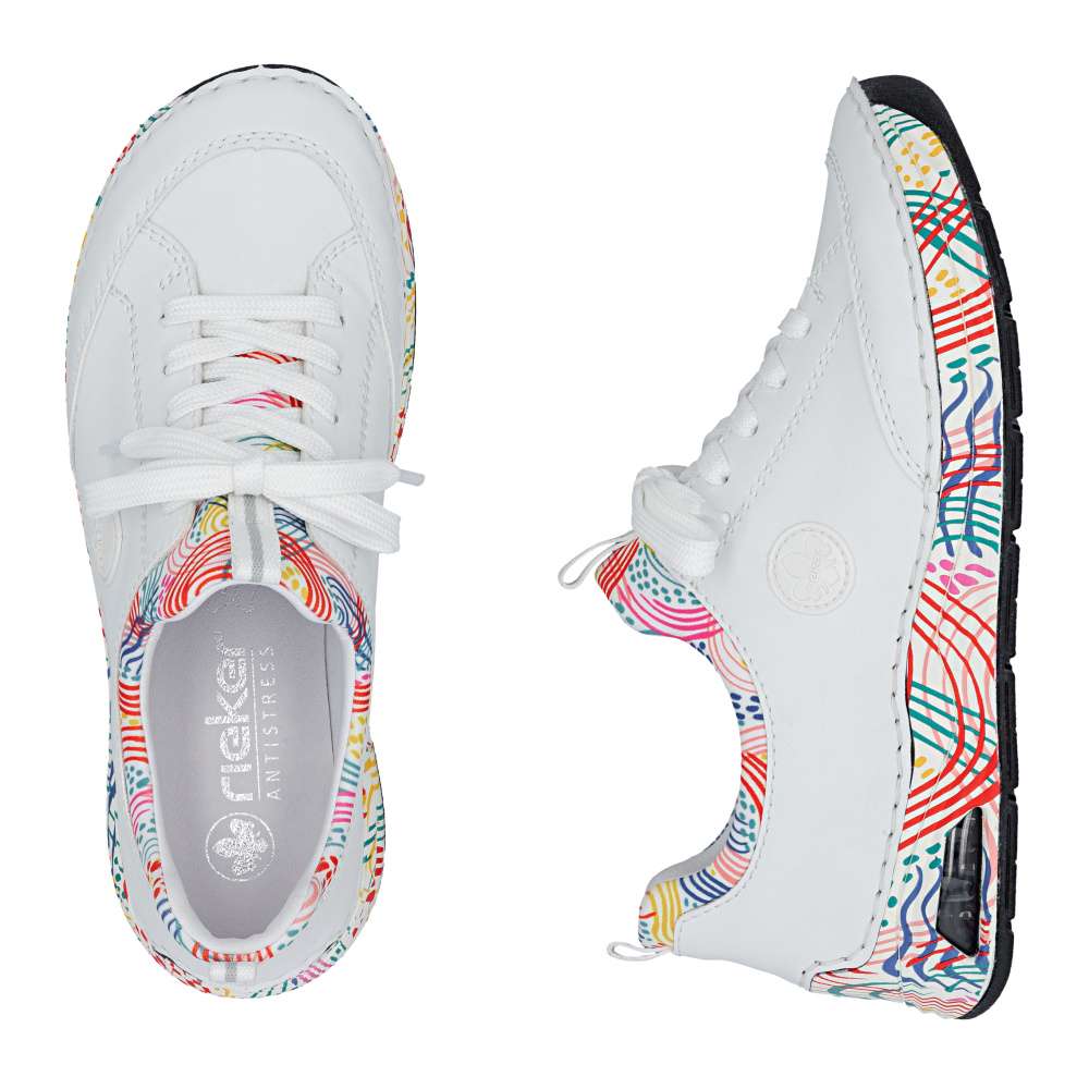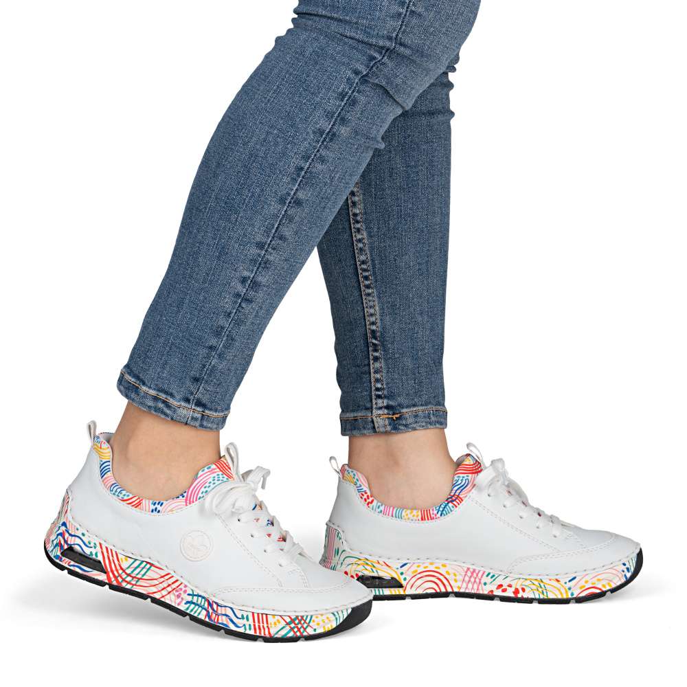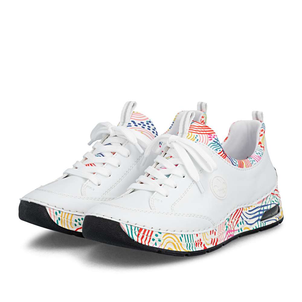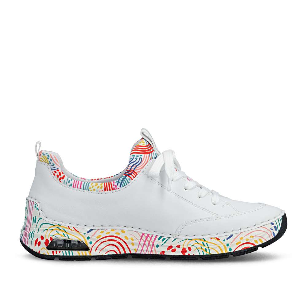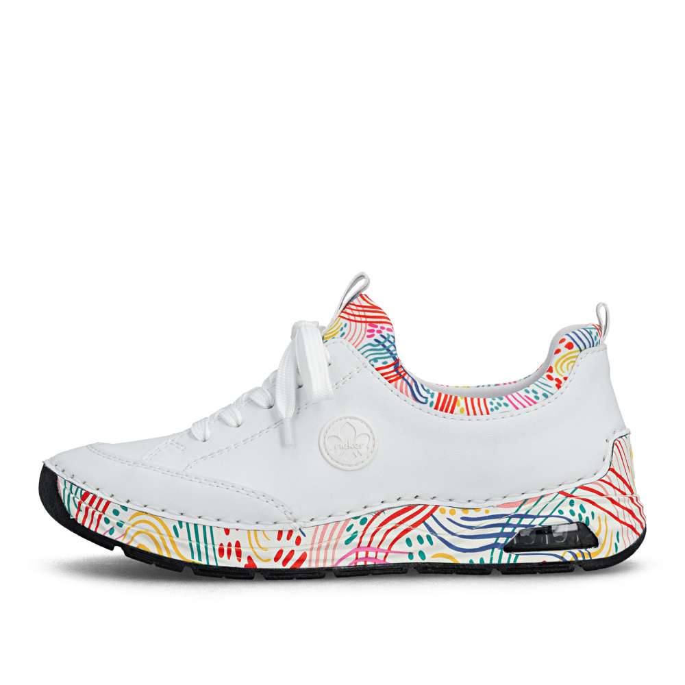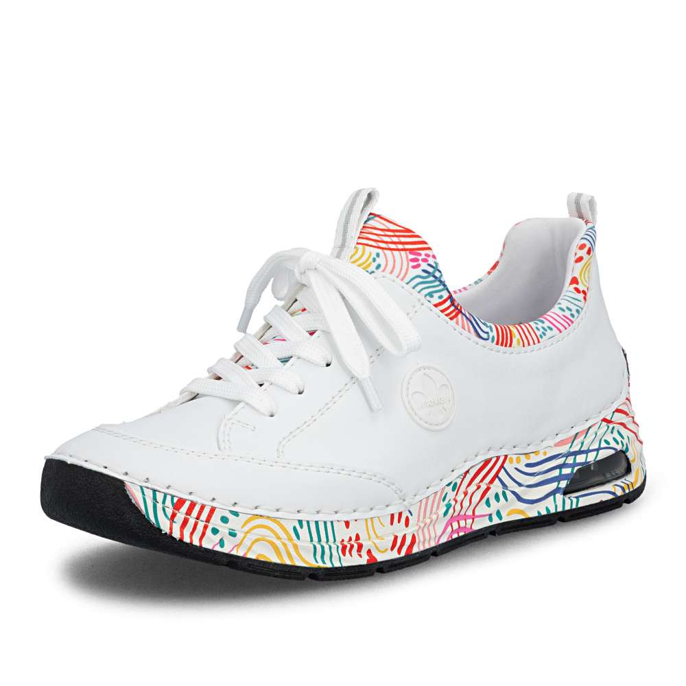 Tyto tenisky RIEKER zaujmou již na první pohled svým originálním zpracováním a detaily, které dodávají botám moderní a stylový vzhled. Svršek je doplněn logem značky, klasickým šněrováním a prošitím, které spojuje svršek s podešví. O pohodlné obouvání a optimální přizpůsobení chodidlu se stará pružný lem horního okraje, který usnadňuje nazutí a zároveň zajišťuje stabilní držení nohy. Měkká kožená stélka poskytuje výjimečný komfort, takže se budete cítit příjemně při každém kroku i během celodenního nošení. Tyto tenisky jsou skvělou volbou pro každodenní nošení a jejich jedinečný design se hodí k množství kousků z vašeho šatníku.