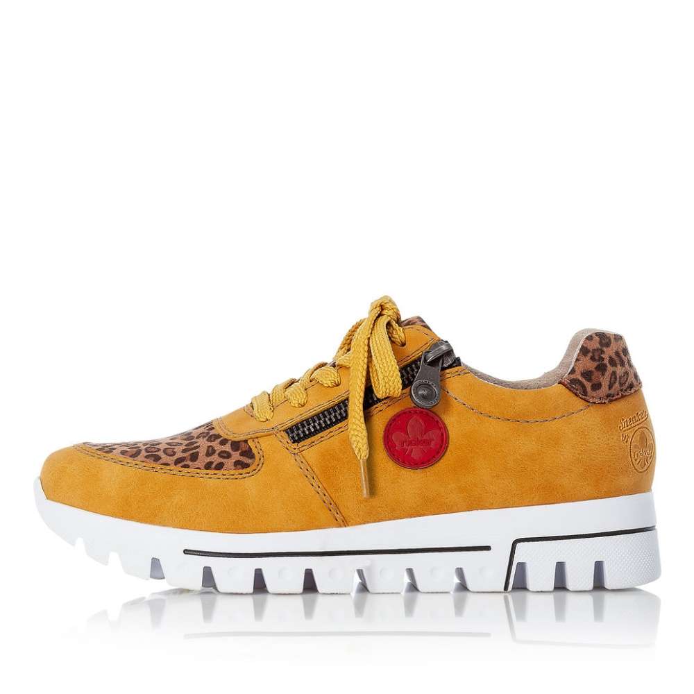 Dámské tenisky žluté barvy jedinečné svým zpracováním, značky RIEKER.