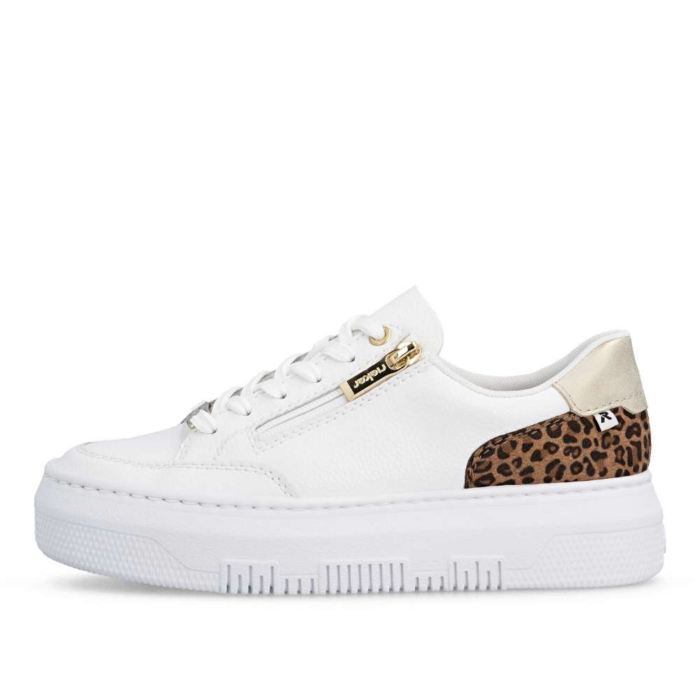 Detailní informace Ukažte svůj styl a užijte si maximální pohodlí s těmito teniskami RIEKER. Bílý svršek je ozvláštněn výraznými aplikacemi v části paty, které okamžitě přitáhnou pohledy a dodají obuvi jedinečný charakter. Design je promyšlen tak, aby spojoval moderní vzhled s praktickými detaily – klasické šněrování doplněné funkčním zipem na nártu zajišťuje rychlé, snadné obouvání a zároveň přesné přizpůsobení boty tvaru vašeho chodidla. O pohodlí během celého dne se stará kožená stélka, která poskytuje příjemný došlap a flexibilní, lehká podešev s technologií Antistress efektivně tlumí nárazy a podporuje přirozený pohyb. Tyto tenisky skvěle doplní váš outfit – ať už je obujete k džínám, sportovním kalhotám nebo k ležérním šatům – a stanou se vaším spolehlivým společníkem na každý den. S těmito teniskami zažijete pocit lehkosti, jistoty a módního stylu při každém kroku. Dokonalá souhra moderního vzhledu a maximálního pohodlí díky funkčním technologiím to jsou boty RIEKER Sport.