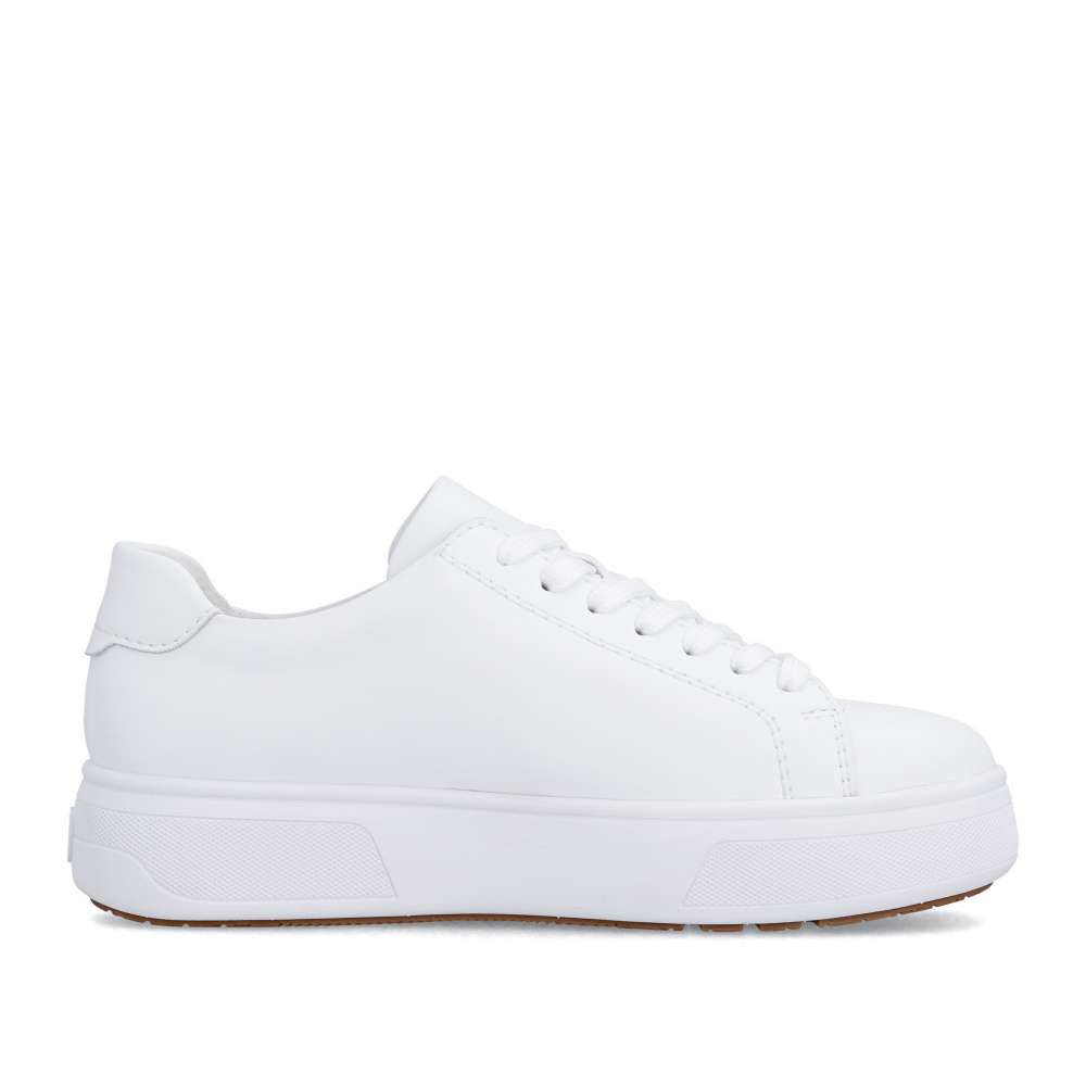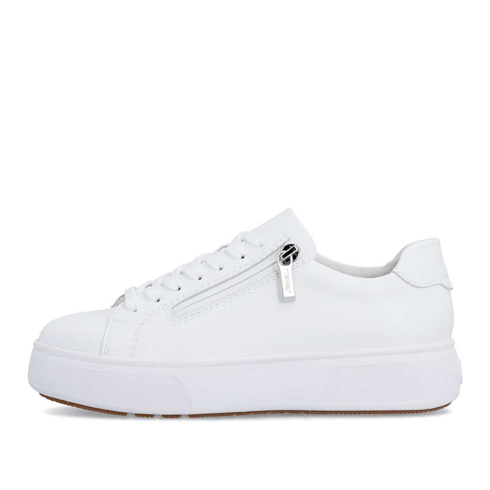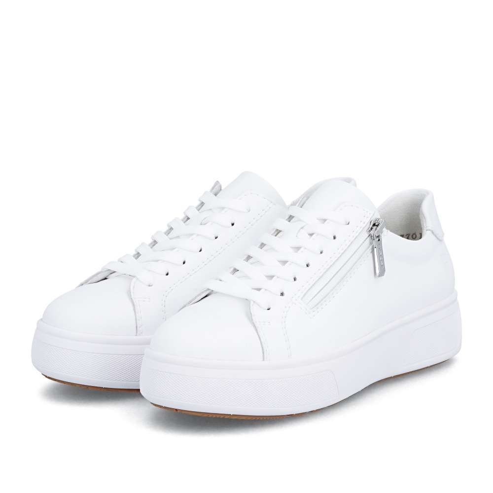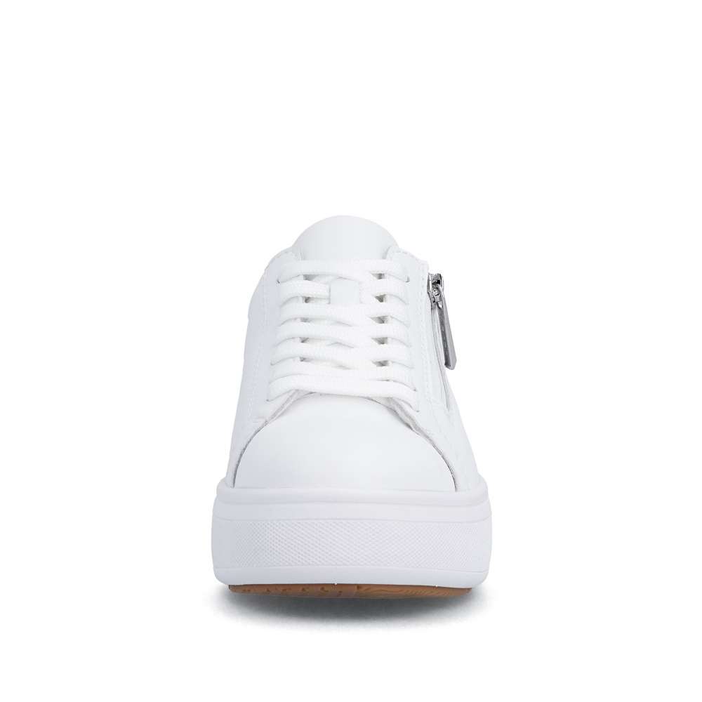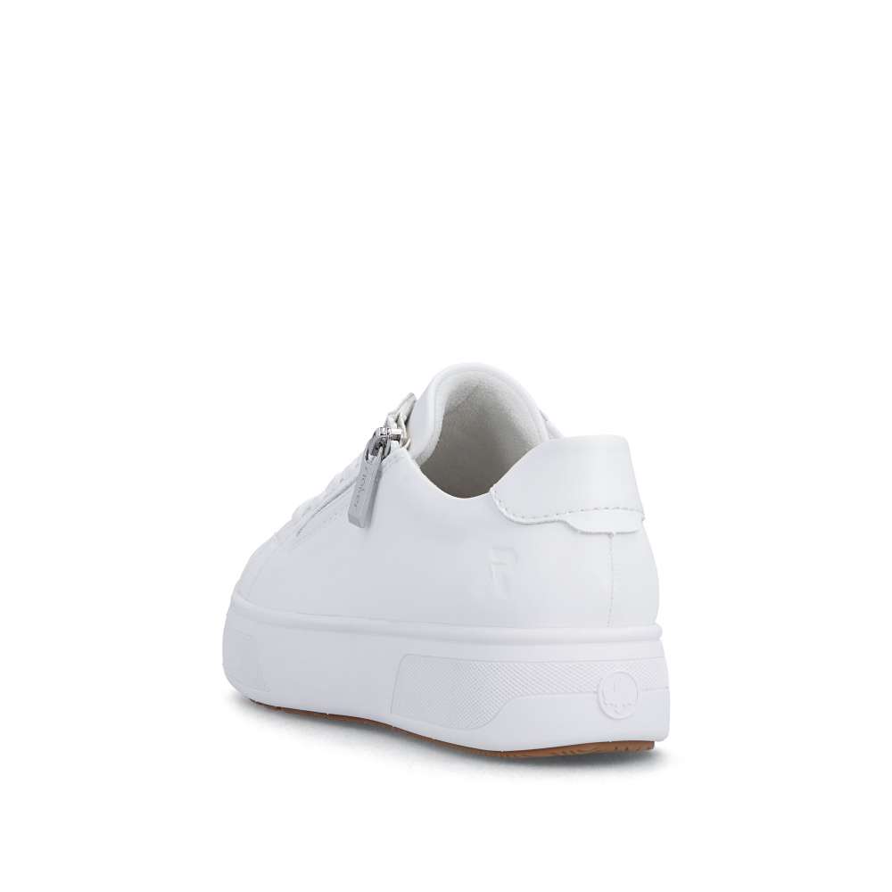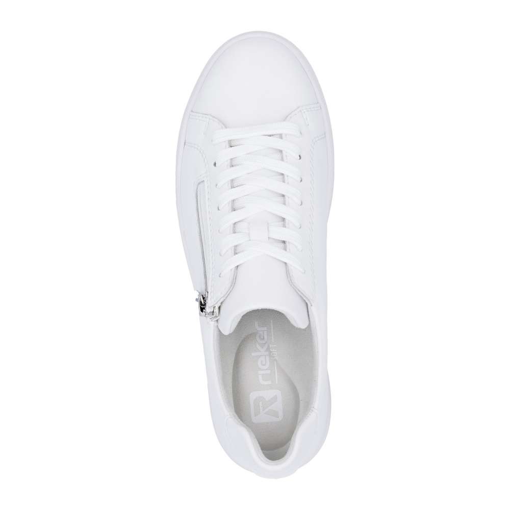 Bílé tenisky RIEKER svým minimalistickým designem vytvoří nadčasový doplněk vašeho vzhledu. Logo značky decentně doplňuje celkový vzhled a podtrhuje jejich stylový charakter. Jednoduché nazutí poskytne zip na nártu a šněrování zajistí dokonalou úpravu požadavkům každé z Vás. Vyjímatelná měkká stélka je tvarována pro maximální pohodlí, zatímco vyšší podešev poskytuje stabilitu a podtrhuje dynamický styl obuvi. Ideální volba pro ženy hledající pohodlnou obuv pro každodenní nošení v univerzálním stylu. Dokonalá souhra moderního vzhledu a maximálního pohodlí díky funkčním technologiím to jsou boty RIEKER Sport.