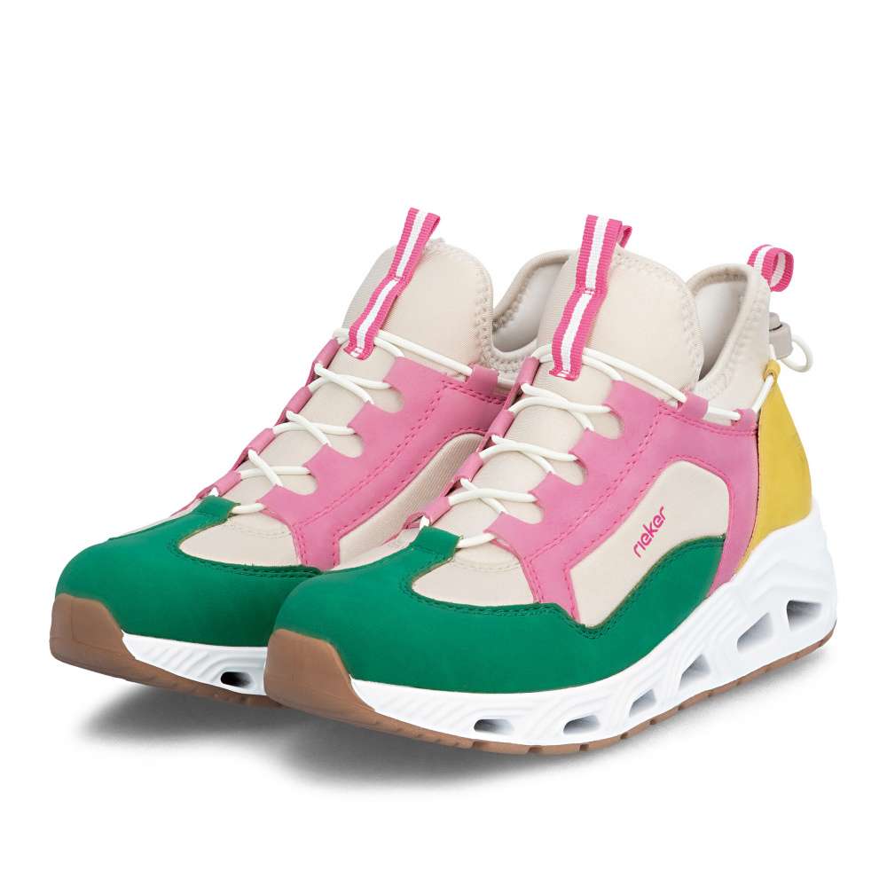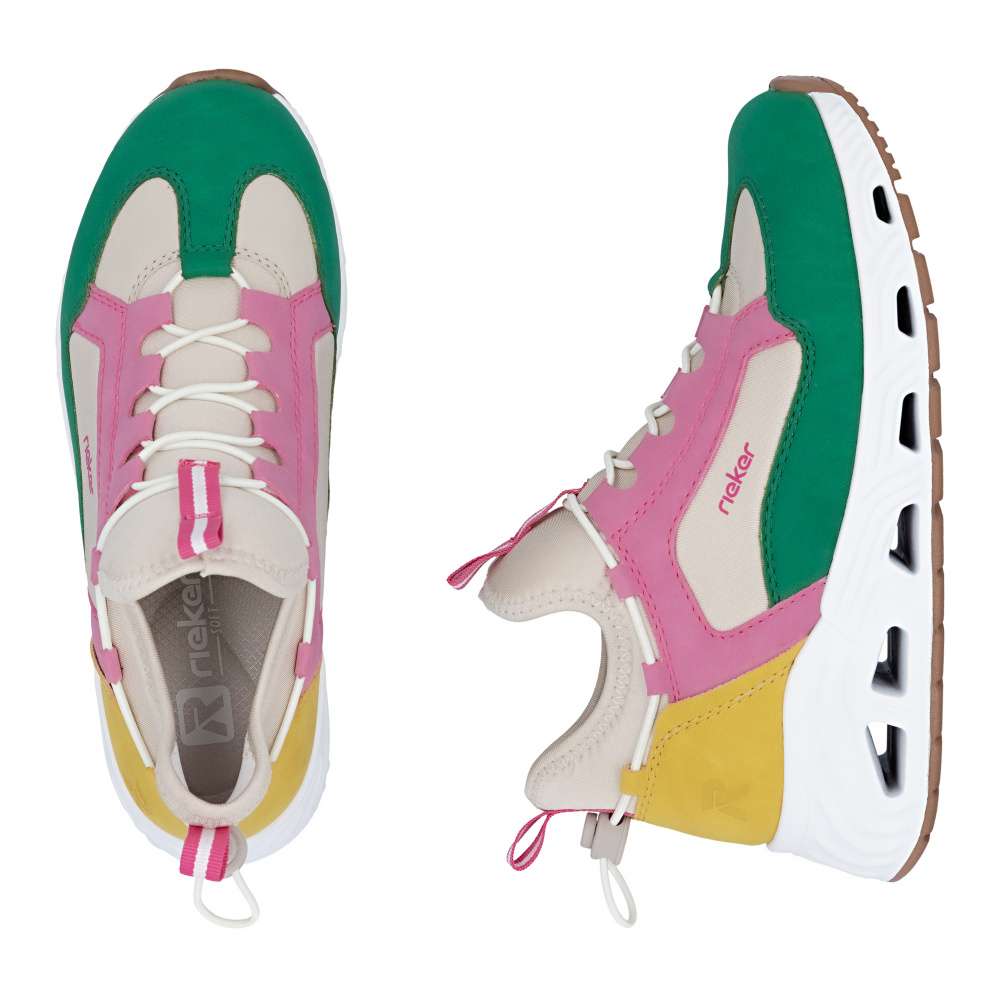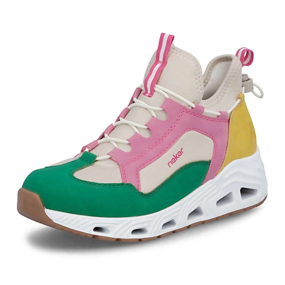 Představte si den plný aktivit - rychlé ráno do práce, procházky městem, setkání s přáteli nebo pohodový čas ve volném čase. S těmito dámskými teniskami Rieker budete kráčet stylově a zároveň v maximálním pohodlí. Svršek bot je složen z několika barevných částí, které spolu vytváří unikátní vzhled dekorovaný atraktivní linií gumičky. Pružný lem horního okraje zajistí dokonalé přizpůsobení tvaru nohy a umožní snadné obouvání. Měkká vyjímatelná stélka zajišťuje komfort při každém kroku a stabilní podrážka se přizpůsobuje pohybu chodidla, poskytuje jistotu při chůzi a zároveň svým originálním zpracováním doplňuje celkový vzhled bot. Decentní logo značky Rieker přidává modelu prestižní charakter a podtrhuje kvalitu zpracování. Tyto tenisky nejsou jen obyčejnou obuví – jsou spolehlivým společníkem, který vás podpoří v každé situaci. Dokonalá souhra moderního vzhledu a maximálního pohodlí díky funkčním technologiím to jsou boty RIEKER Sport.