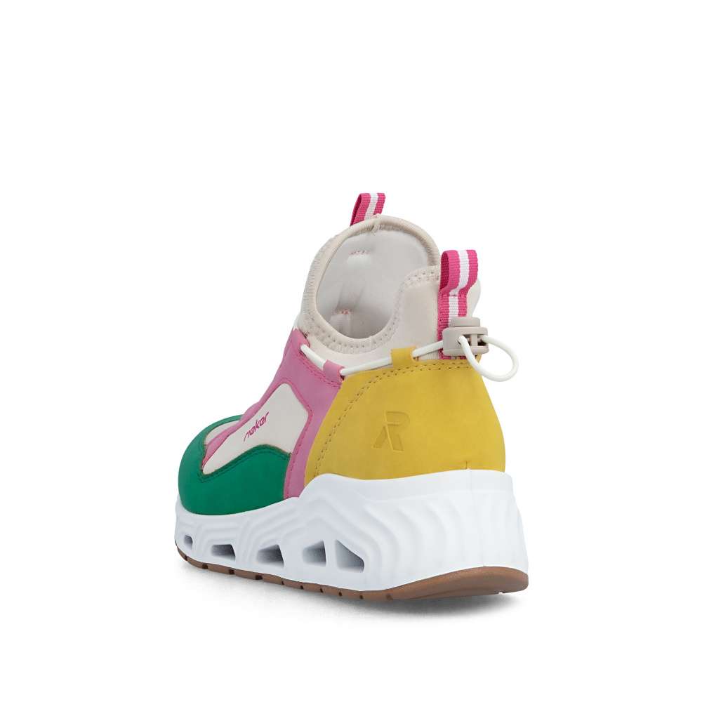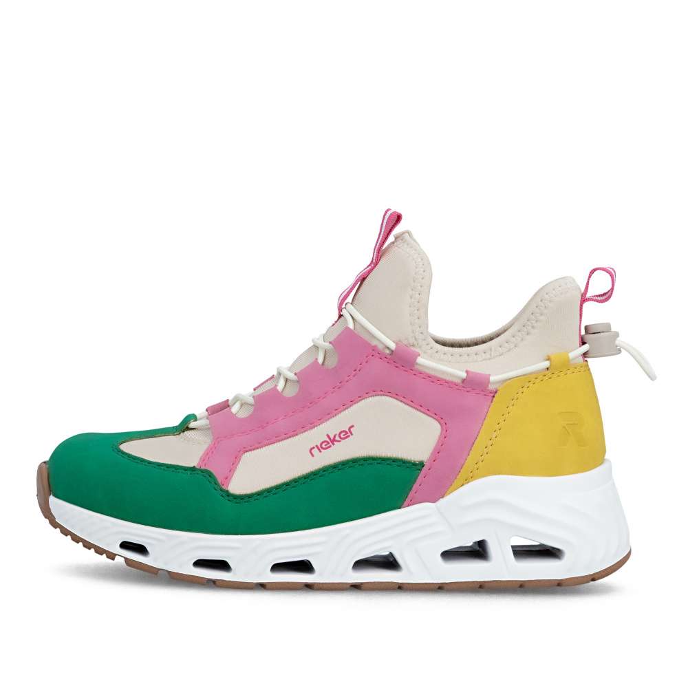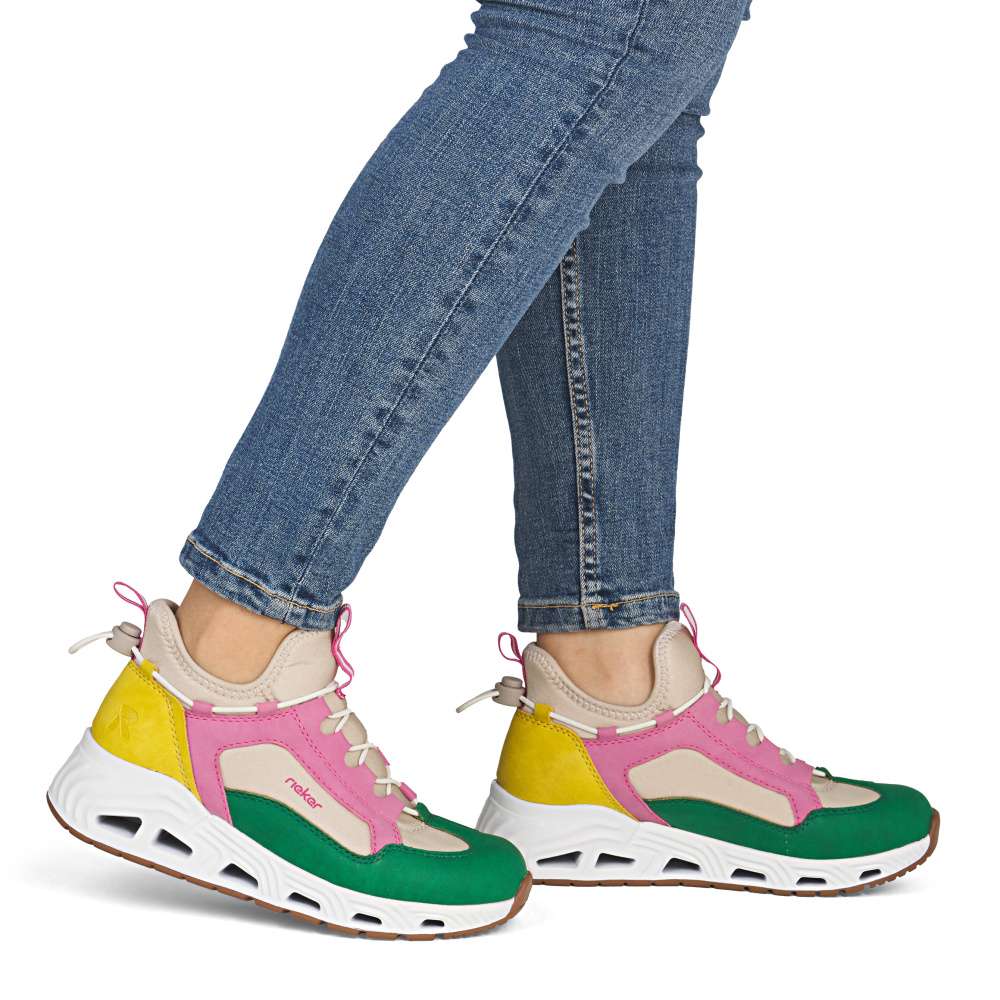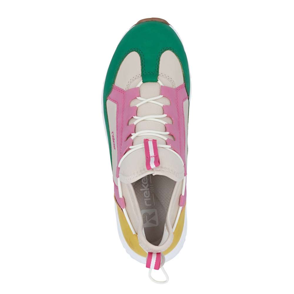 Představte si den plný aktivit - rychlé ráno do práce, procházky městem, setkání s přáteli nebo pohodový čas ve volném čase. S těmito dámskými teniskami Rieker budete kráčet stylově a zároveň v maximálním pohodlí. Svršek bot je složen z několika barevných částí, které spolu vytváří unikátní vzhled dekorovaný atraktivní linií gumičky. Pružný lem horního okraje zajistí dokonalé přizpůsobení tvaru nohy a umožní snadné obouvání. Měkká vyjímatelná stélka zajišťuje komfort při každém kroku a stabilní podrážka se přizpůsobuje pohybu chodidla, poskytuje jistotu při chůzi a zároveň svým originálním zpracováním doplňuje celkový vzhled bot. Decentní logo značky Rieker přidává modelu prestižní charakter a podtrhuje kvalitu zpracování. Tyto tenisky nejsou jen obyčejnou obuví – jsou spolehlivým společníkem, který vás podpoří v každé situaci. Dokonalá souhra moderního vzhledu a maximálního pohodlí díky funkčním technologiím to jsou boty RIEKER Sport.