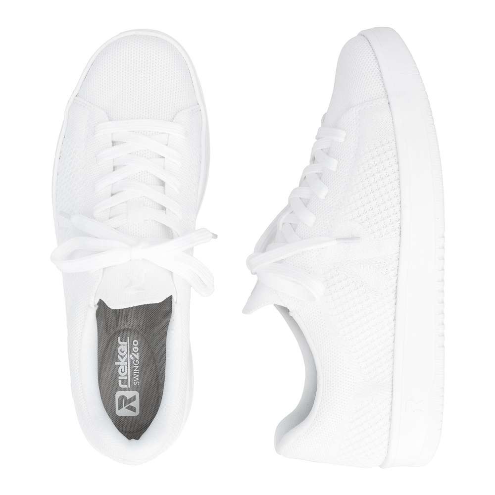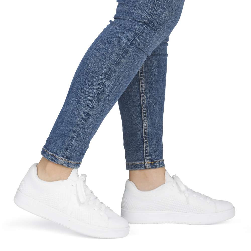 Obuv REMONTE představuje prémiovou řadu značky RIEKER, která se vyznačuje vysokou kvalitou použitých materiálů a precizním zpracováním. Moderní design a komfort při nošení se dokonale pojí v těchto teniskách, které vnesou do vašeho šatníku svěží nádech. Bílý svršek v textilním provedení s efektní texturou a výrazným logem značky v boční části působí atraktivně. Šněrování umožňuje pohodlné obouvání a přesné přizpůsobení tvaru chodidla, což zaručuje stabilitu a přirozený pohyb při každém kroku. Vyjímatelná měkká stélka poskytuje výjimečný komfort během celého dne a zároveň umožňuje snadné čištění či výměnu dle potřeby. Podešev poskytuje optimální oporu při chůzi a komfort při každém kroku. Harmonický design, pečlivě propracované detaily a praktické funkční prvky je dělají tenisky vhodnými pro každodenní nošení, volnočasové aktivity, procházky po městě i cestování.