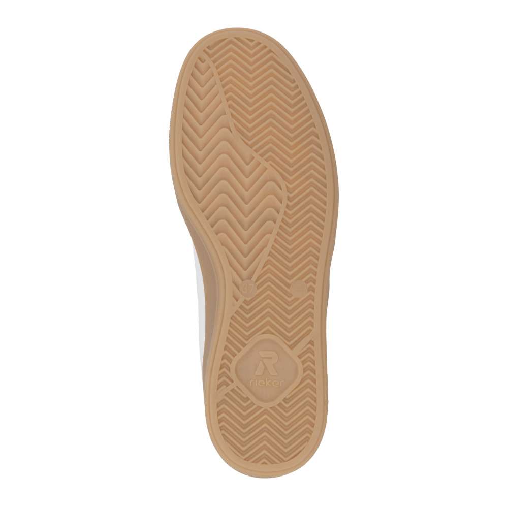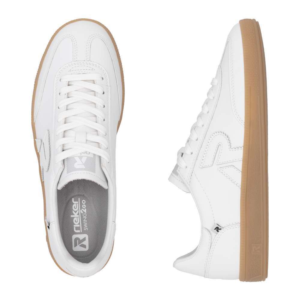 Užívejte si sportovní styl s botami značky RIEKER. Tenisky RIEKER v retro stylu přinášejí kombinaci klasického designu a moderního pohodlí. Bílý kožený svršek je ozvláštněn zajímavými liniemi šití a výrazným logem značky, které dodává botám osobitý vzhled. Šněrování zajišťuje přizpůsobení a stabilitu, zatímco vyjímatelná stélka tvarovaná pro dokonalou oporu poskytuje komfort po celý den. Kontrastní hnědá podešev dodává modelu módní akcent, který zaujme na první pohled. Tyto tenisky RIEKER jsou perfektní volbou pro milovnice pohodlí, kvality a stylového retro designu. Dokonalá souhra moderního vzhledu a maximálního pohodlí díky funkčním technologiím to jsou boty RIEKER Sport. Technologie: Antistress – díky čtyřem antistresovým vlastnostem – lehkosti, pružnosti, prostornosti a vynikající absorpci nárazů – vám boty RIEKER nabídnou komfortnější chůzi. Swing2GO – měkká stélka ve tvaru oblouku, která podporuje přirozený tvar chodidla a nabízí efektivní tlumení nárazů. Tato bota je vybavena vyjímatelnou stélkou.