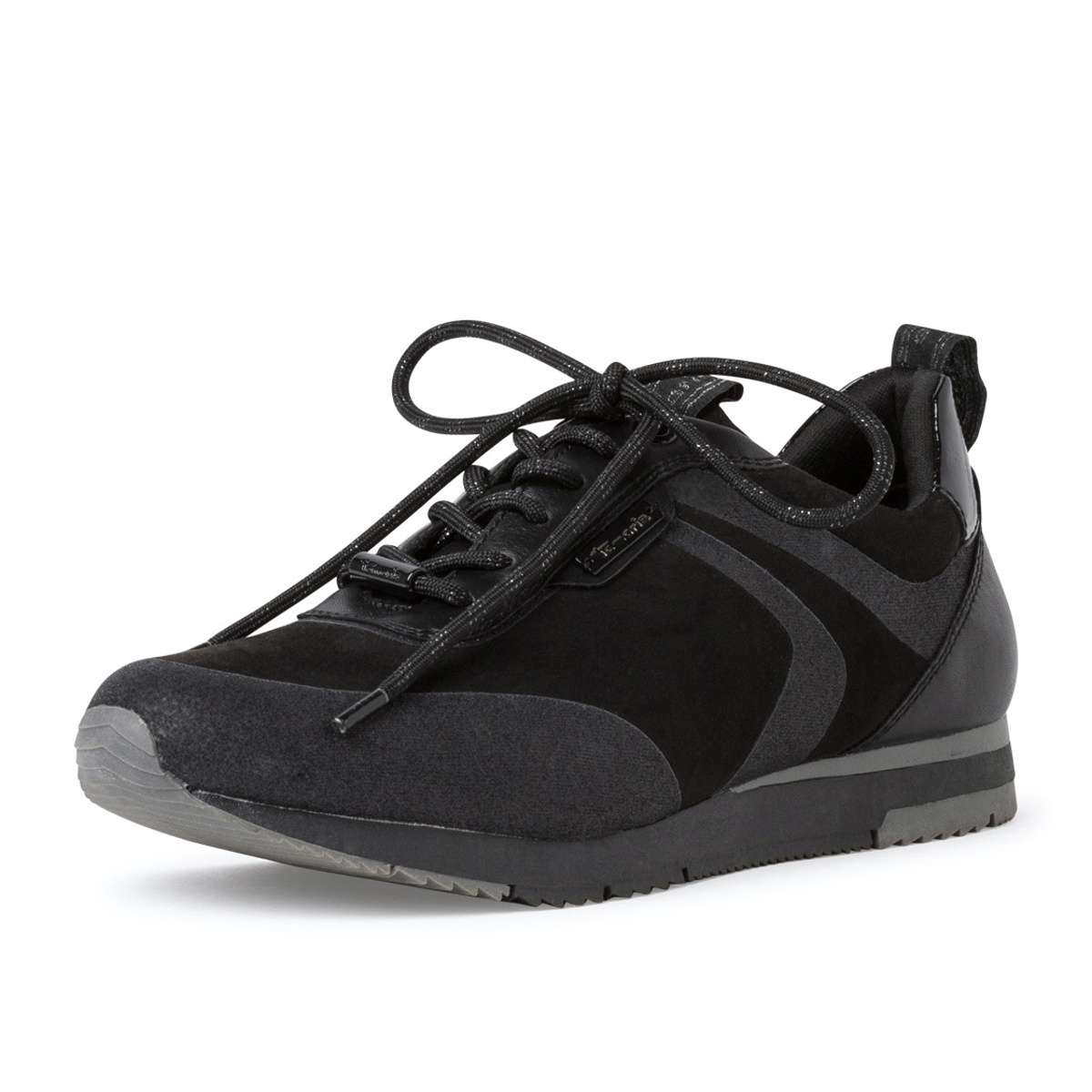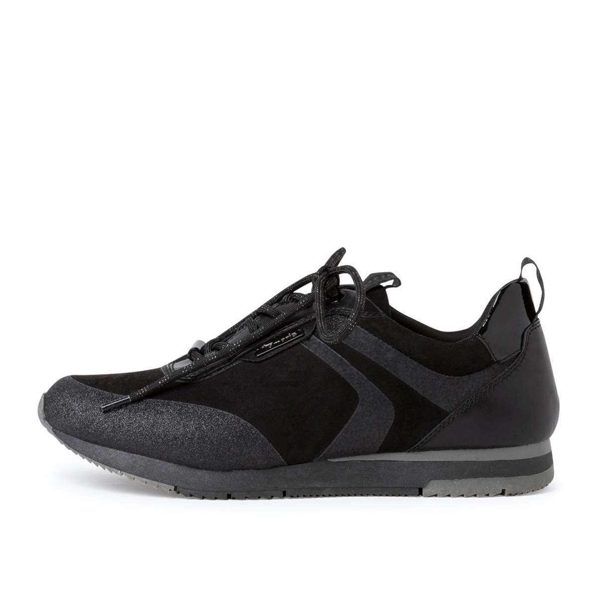 Módní tenisky se třpytivými detaily a textilním svrškem od značky Tamaris v několika barevných variantách. Obuv je šněrovací a vzadu má pomocné poutko, které skvěle usnadní nazutí.