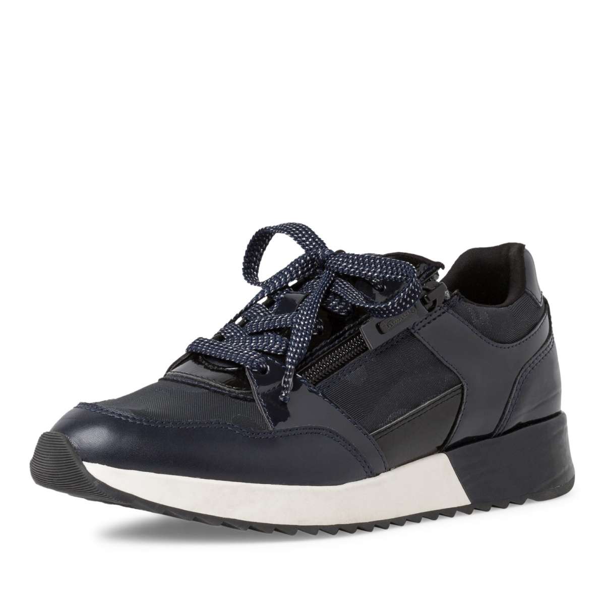 Stylové tenisky od značky Tamaris s jedinečným vzhledem a kombinací povrchových materiálů ve dvou barevných variantách. Tkaničkami na šněrování si je můžete utáhnout přesně podle Vaší potřeby a funkční zip na vnější straně napomůže obutí.