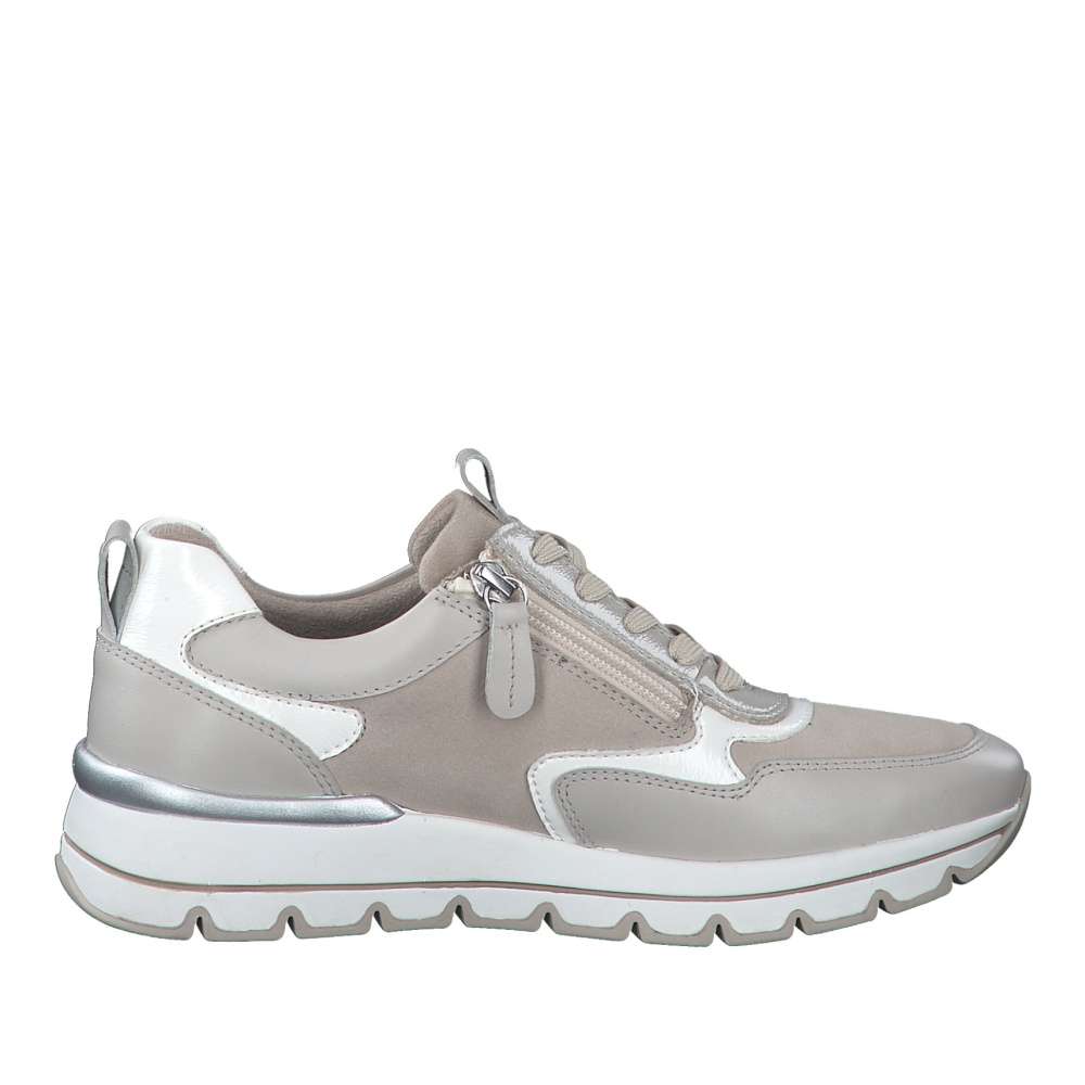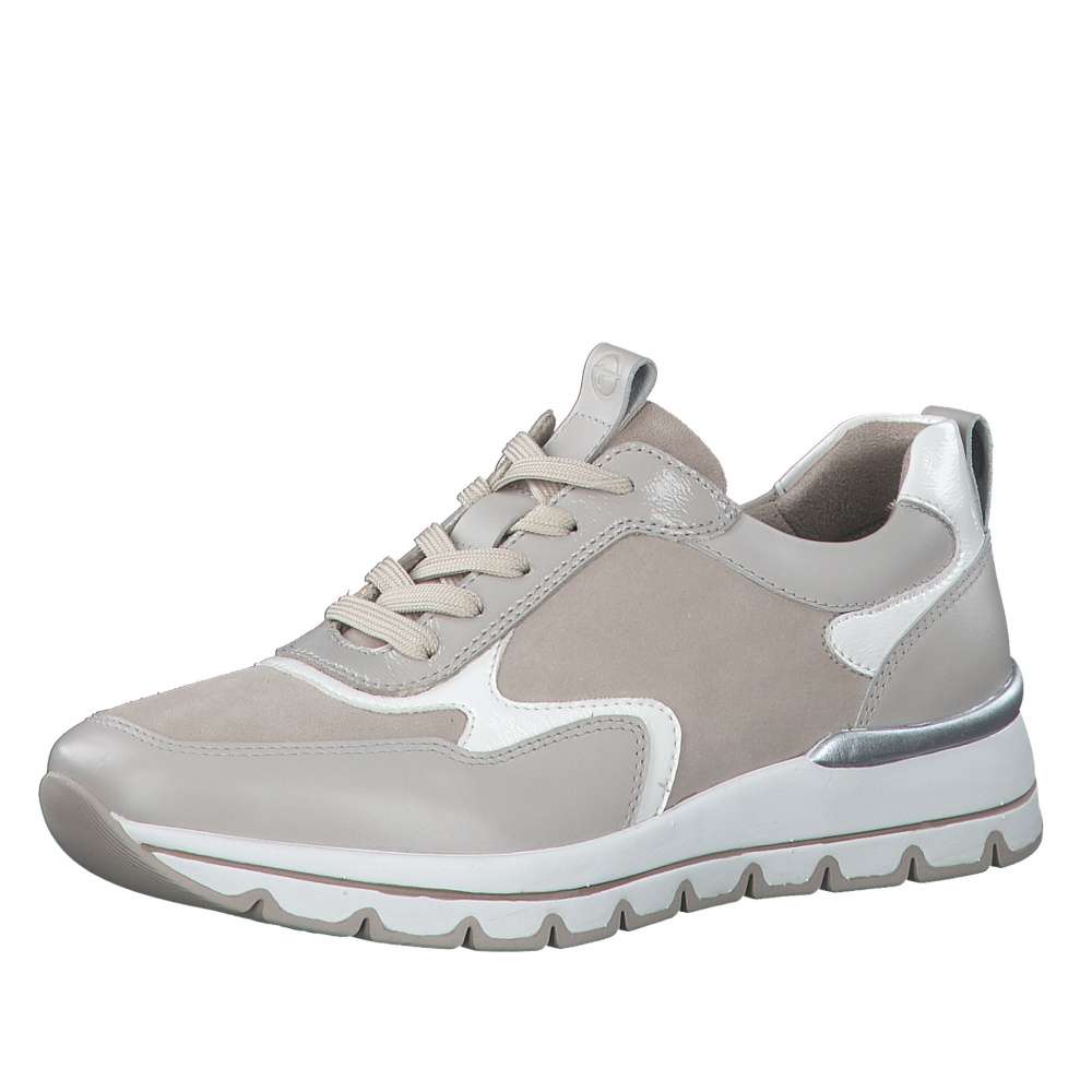 Detailní informace Tyto dámské tenisky TAMARIS jsou propracované do posledního detailu. Světlé decentní barvy nechají vyniknout prošití a kombinace různých materiálů dodává botám šmrnc. Kolem tkaniček je použitý lesklý lakovaný materiál, který se opakuje částečně i kolem paty. Praktický zip usnadní nazouvání boty a podešev je vysoká cca 4,5 cm a je vyrobená ze speciálního materiálu, který klade důraz na pohodlné nošení.