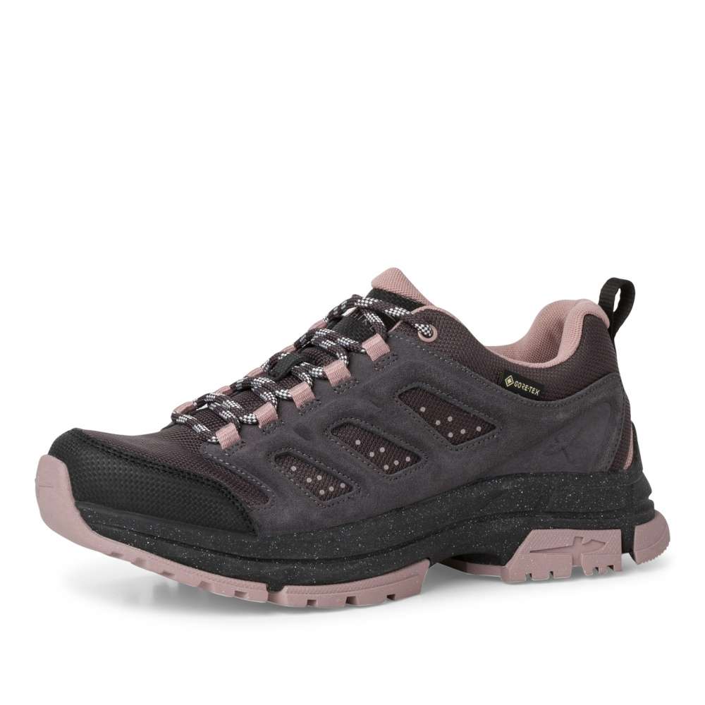 Pokud hledáte opravdu kvalitní trekingové obutí na vycházky do hor, jsou pro Vás tyto Tenisky značky Tamaris jasnou volbou. Díky kombinaci tří materiálů, což je kůže, textil a syntetika, zajistí Vaší noze dokonalou oporu a pohodlí při chůzi po náročném terénu. Díky speciální technologii Gore-Tex Vám budou všestranným doplňkem i do nepříznivého počasí. Nabízíme Vám varianty ve čtyřech barvách, díky čemuž si vybere opravdu každá. Mimo turistiky ovšem mohou být také k využití při jakýchkoli vycházkách do přírody, při procházce se psem, či práci na zahradě. Technologie: Gore-Tex - speciální membrána Gore-Tex, která přímo pohlcuje páru a odvádí ji botou ven. Chrání Vaši nohu při každém počasí, neboť je větru odolná, nepromokavá a prodyšná. Terra Traction – je označení tvrdosti podešve, zejména u outdoorových aktivit musí vlastnosti podešve splňovat mnoho různých nároků. Tvrdost podešve, která se liší podle oblasti použití, musí zajistit optimální stabilitu v každém terénu. Stupeň tvrdosti TERRA TRACTION lze rozpoznat podle barvy diamantu na spodní straně boty: měkká – zelená, středně tvrdá – žlutá, tvrdá – červená.