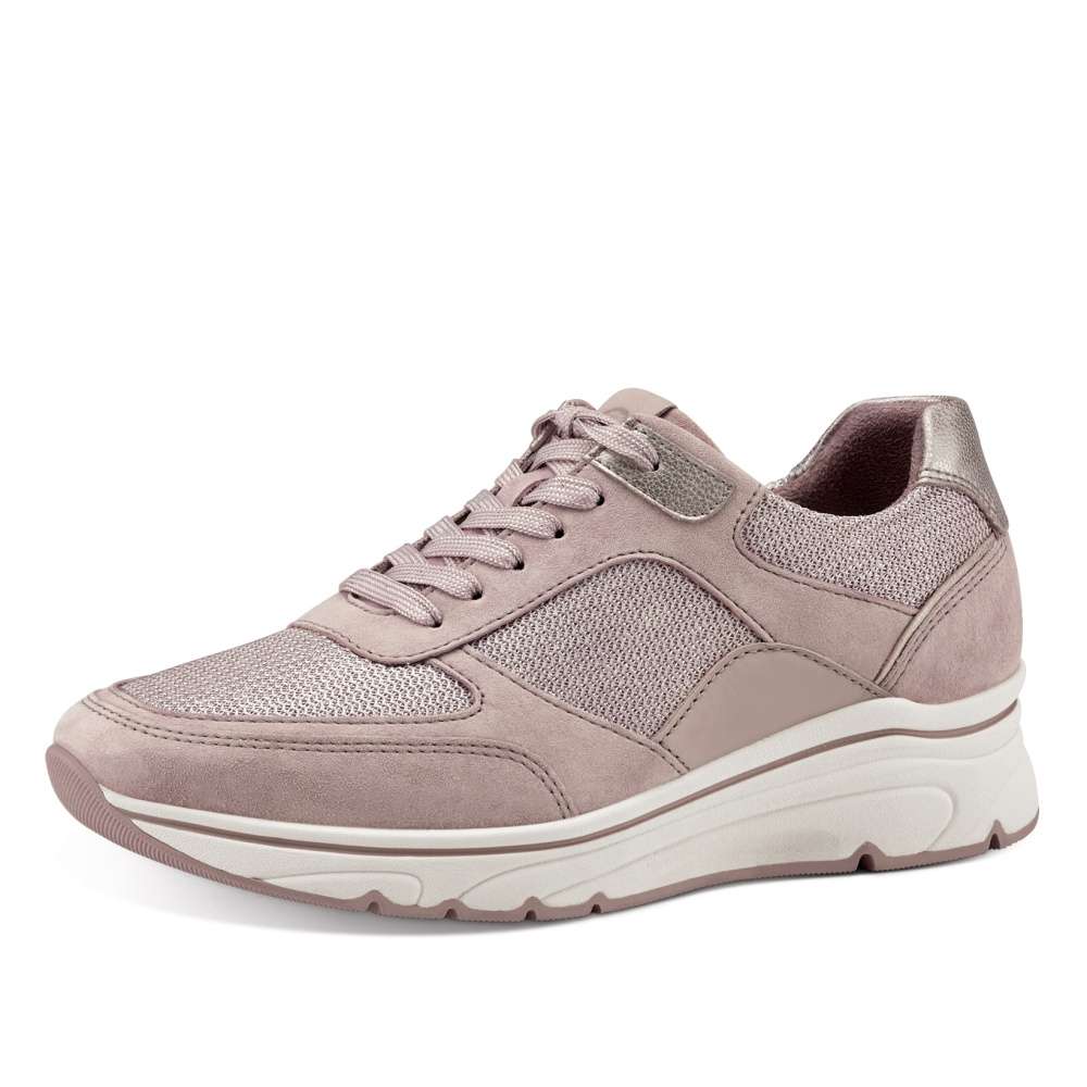 Detailní informace S těmito teniskami značky TAMARIS doladíte snad jakýkoliv outfit. Svršek vyrobený kombinaci materiálů růžové barvy je dokonale poskládaný. Pro snadné nazouvání slouží zip a šněrování, kterým si obuv přizpůsobíte dle svých požadavků. Díky měkké vyjímatelné stélce a vyšší podešvi se budete cítit jako v bavlnce po celý den. Tento model využijete ať už na cestě do práce nebo na procházce městem.