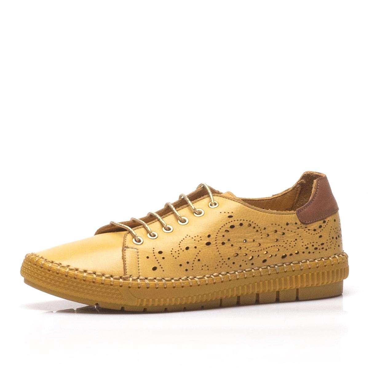 Dámská teniska vyrobená z pravé kůže, bude pro Vás tou správnou volbou pro celodenní nošení. Svršek ve slušivé barvě je po stranách designově perforován, v oblasti paty ozdoben kontrastním hnědým prvkem a šněrováním si obuv přizpůsobíte dle Vašich představ. Tyto tenisky nabízíme ve dvou barevných variantách a budou skvěle doplňovat Vaše outfity.